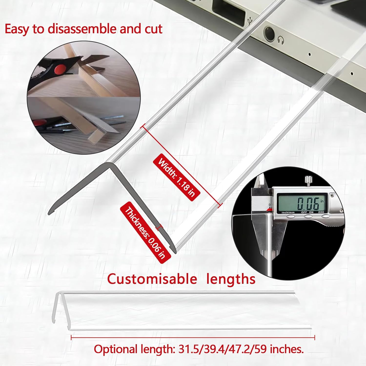 - Customizable and easy to cut: Clear corner guards for walls offer a variety of sizes for you to choose from, length: 40.6/31.5/39.4/47.2/59 inches, width: 1.18 inches, easy to cut and modify, suitable for different needs, easy to paint, imperceptible, and can fit well into walls; Wall edge protectors guards has an easy to clean surface that only needs to be wiped clean with a damp cloth or sponge