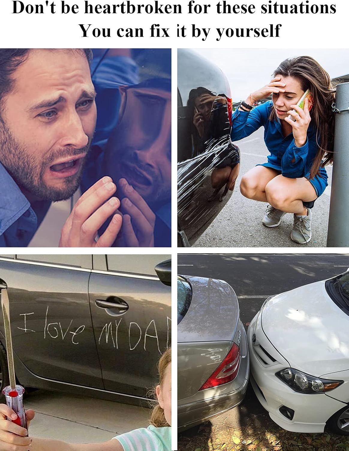 - The daily drive gets rock chips and scratches: Rock chips on the bumper, road rash on rims, the front and passenger side all get many scratches. You will prefer SYOAUTO Oxford white car touch-up paint to the black dings in your Oxford white paint