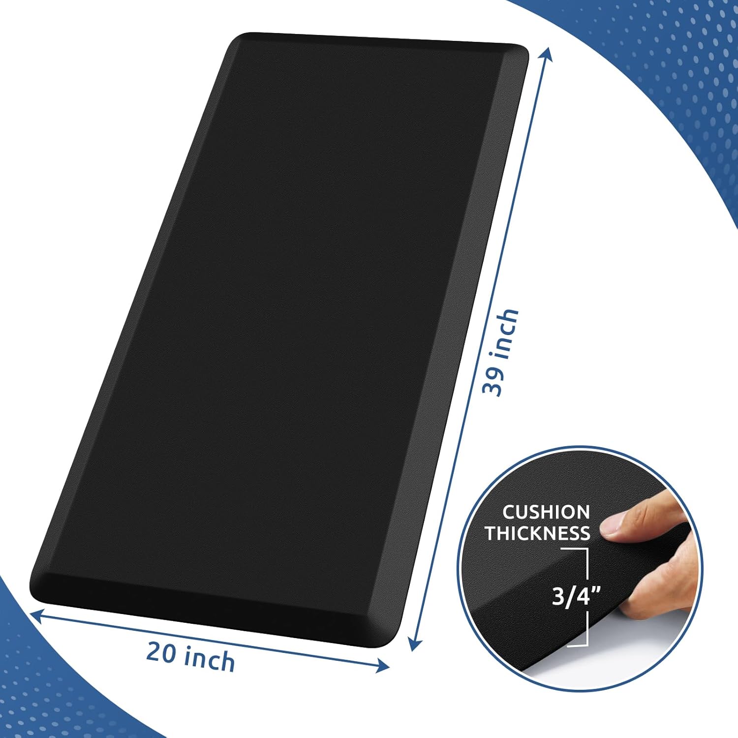 KitchenClouds Kitchen Mat Cushioned Anti Fatigue Rug 20"x39" Waterproof, Non Slip, Standing and Comfort Desk/Floor Mats for House Sink Office (Black,0.8inch)