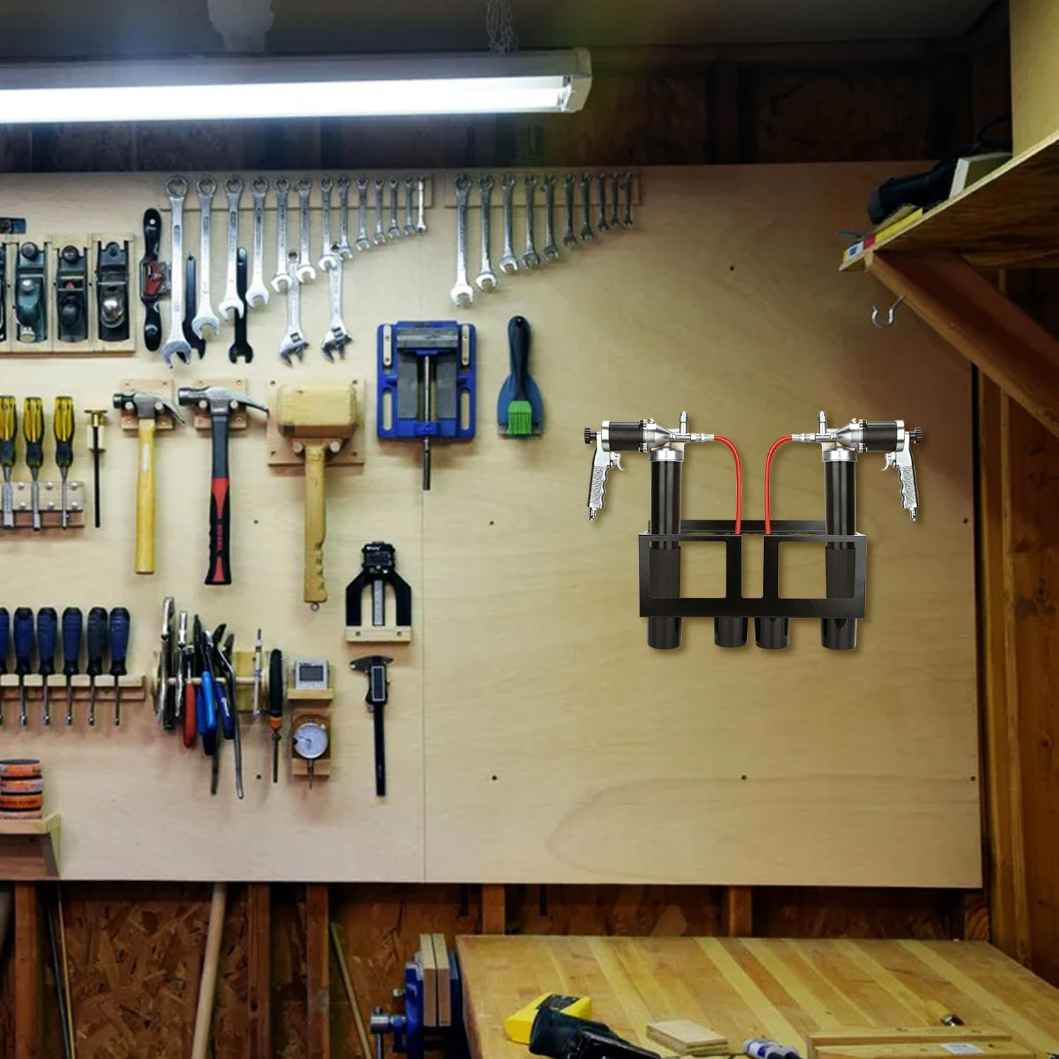 TOPOWN Grease Gun Holders Compatible with 2 Grease Guns, Grease Gun Rack Tractor, Grease Gun Garage Organizer Wall Mount, Grease Gun Storage Rack, Grease Gun Storage, Grease Gun Holder Wall Mount