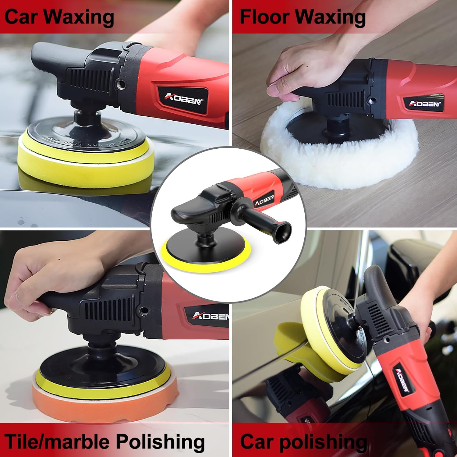 AOBEN Rotary Buffer Polisher,1200W 6-inch/ 7-inch Car Buffer,Car Polisher Waxer Kit with 6 Variable Speed 1000-3500RPM & 4 Polishing Pads,Detachable Handle for Boat,Car Polishing and Waxing