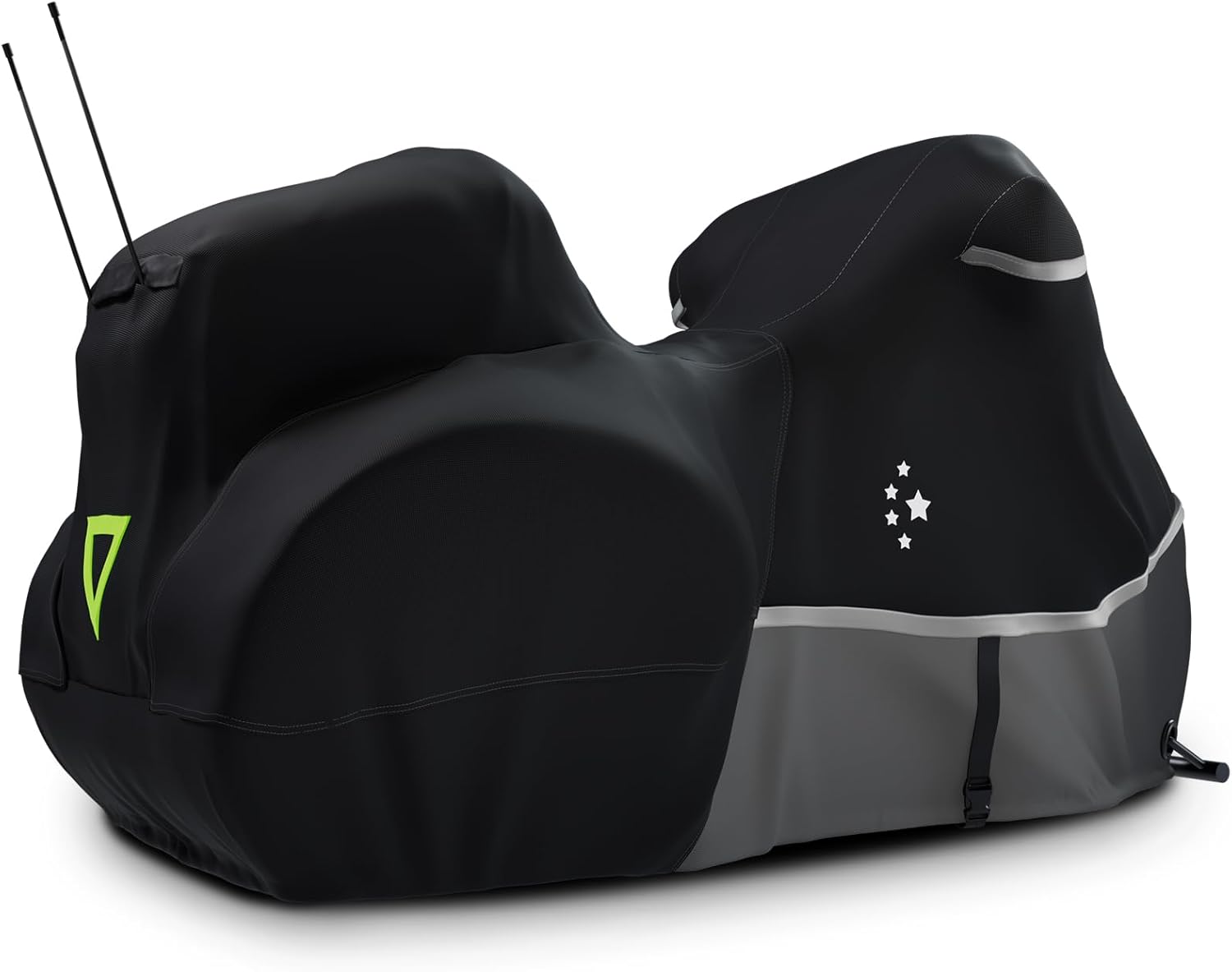 Motorcycle Cover with Side+Top Box Heavy Duty 420D Waterproof for Touring Models Harley Davidson Ultra Limited,Road Glide Limited, Gold Wing,Road Master,Indoor & Outdoor Storage Black/Gray