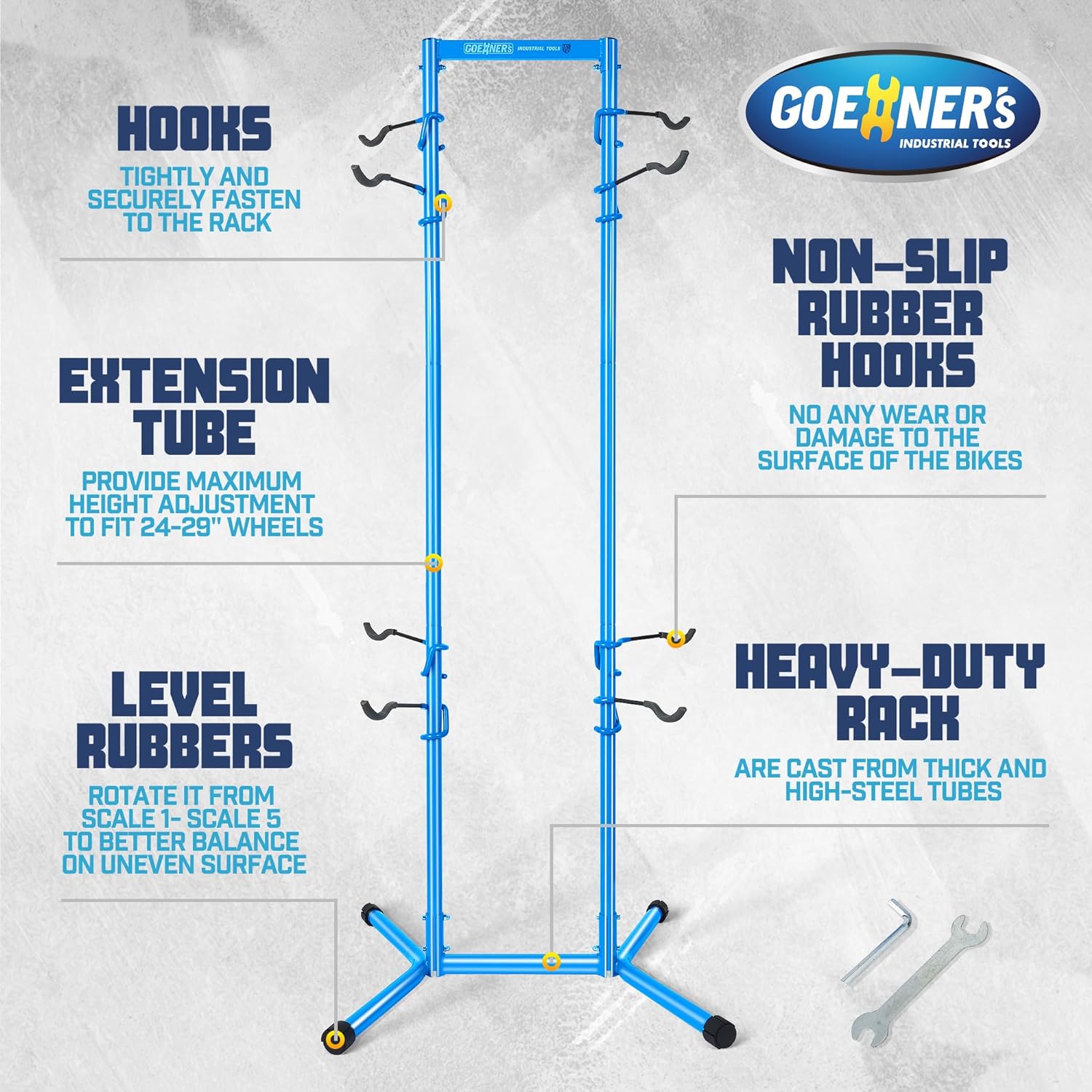 - [Robust Build for Secure Support]: Designed with high-strength forged steel and reinforced legs, this bike storage rack offers a robust build, ensuring steadfast stability and the ability to support weights of up to 240 lbs (maximum 60 lbs per bike).