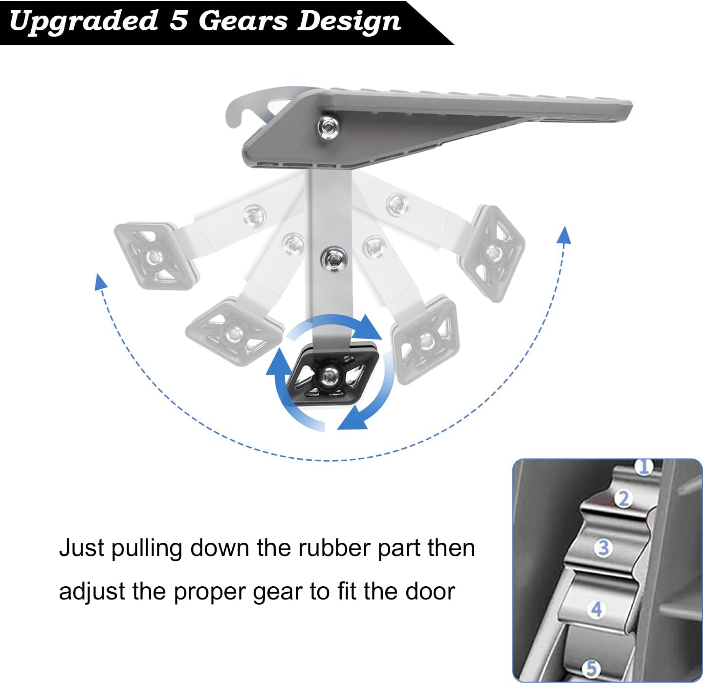 - Upgraded 5 Gears and Easy Installation: Upgraded 5 gears design provides 5 options for adjusting the leveling angle to ensure stability. Quickly access the roof in a few simple steps by hooking the latch, then pulling down the rubber part and adjusting the proper gear to fit the door