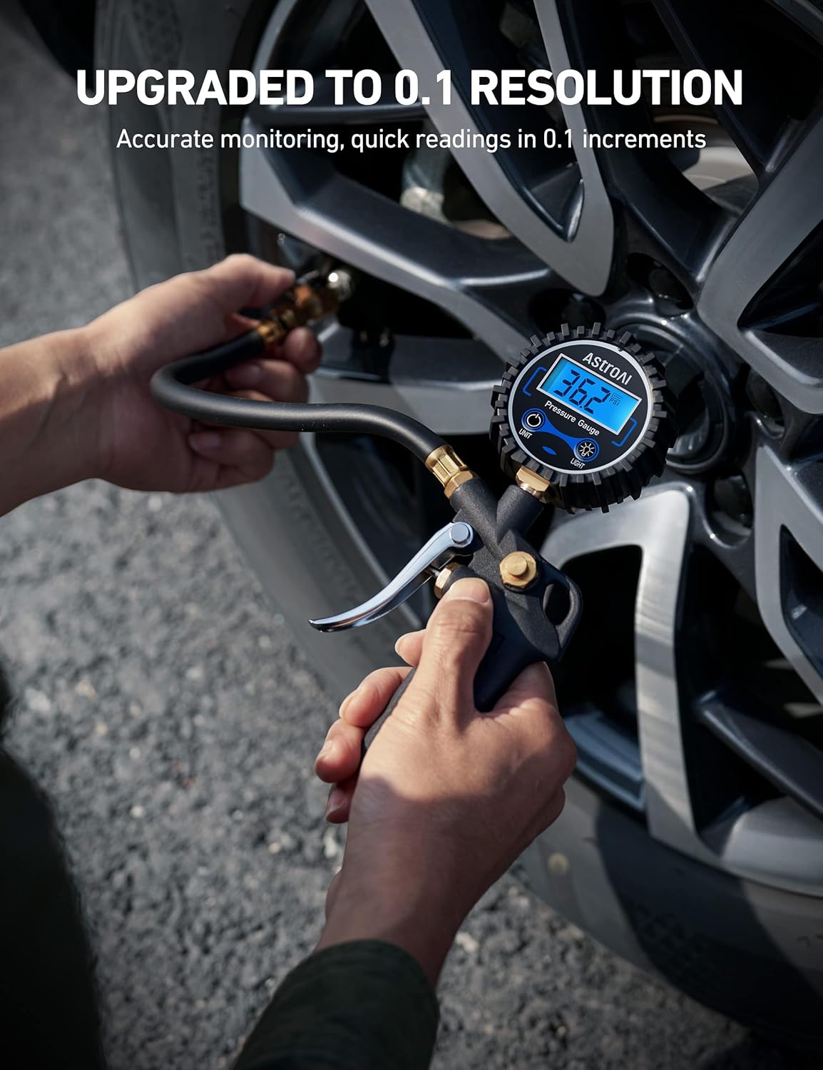 AstroAI Digital Tire Pressure Gauge with Inflator, 250 PSI Air Chuck & Compressor Accessories Heavy Duty with Quick Connect Coupler, 0.1 Display Resolution, Car Accessories, 2pack