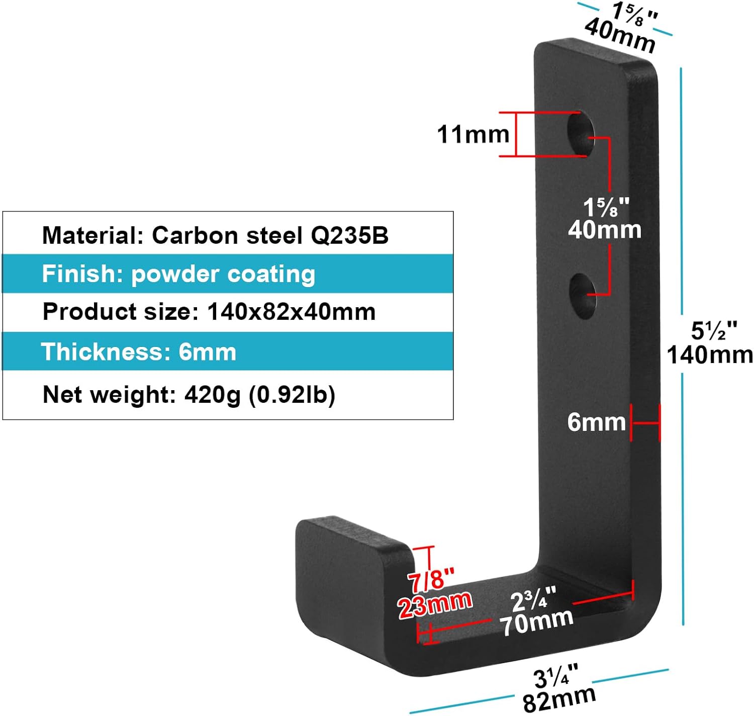 - Round corner Heavy duty wall hooks with 1/4" thickness, each hook can carry 264 lbs