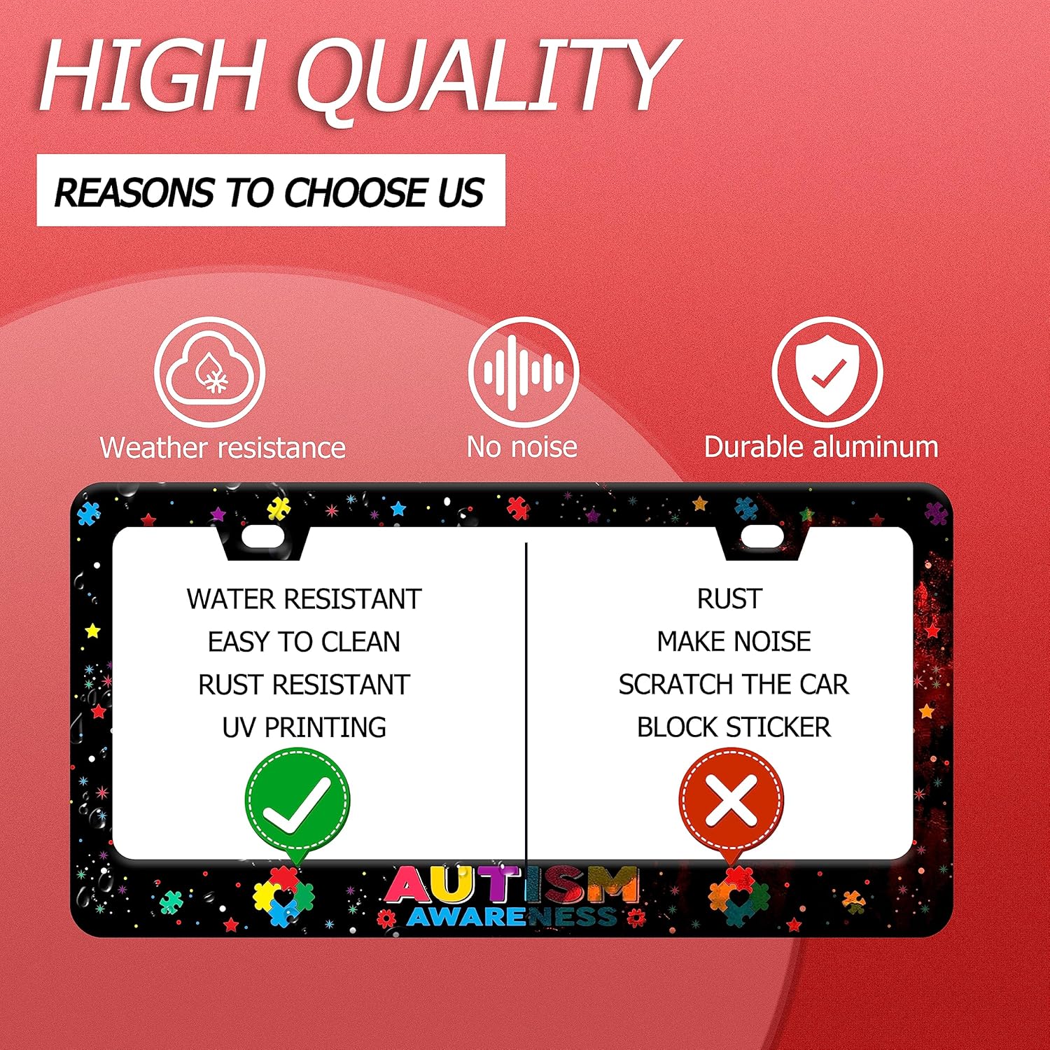 Autism Awareness License Plate Frame License Plate Stainless Steel Parts Colorful License Plate Decorative with Screws Size 12.3" x 6.3" Men Women