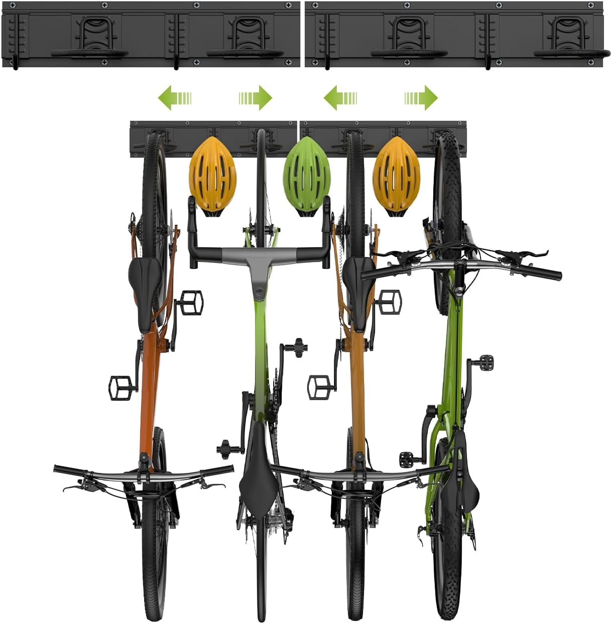 Bike Storage Rack 32Inch for 4 Bikes + 3 Helmets, Up to 300lbs, Heavy Duty Bike Hangers for Garage, Bike Hooks for Garage, Solid Steel Bicycle Storage, Bike Wall Mount, Black