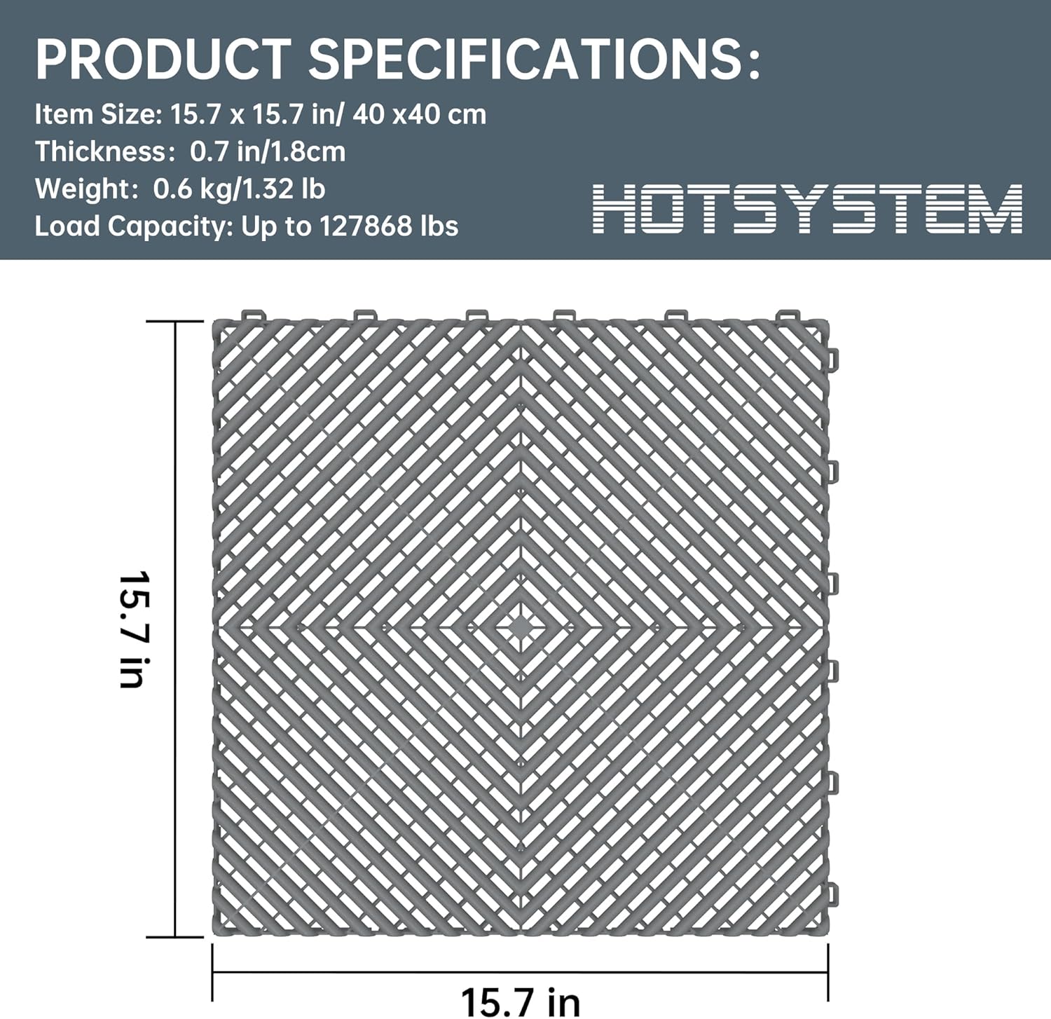 - 【Multi Purpose】HOTSYSTEM provides high-quality interlocking floor tiles for garages, basements, and workshops. We believe that a stronger, safer, and smarter home starts from the ground up.