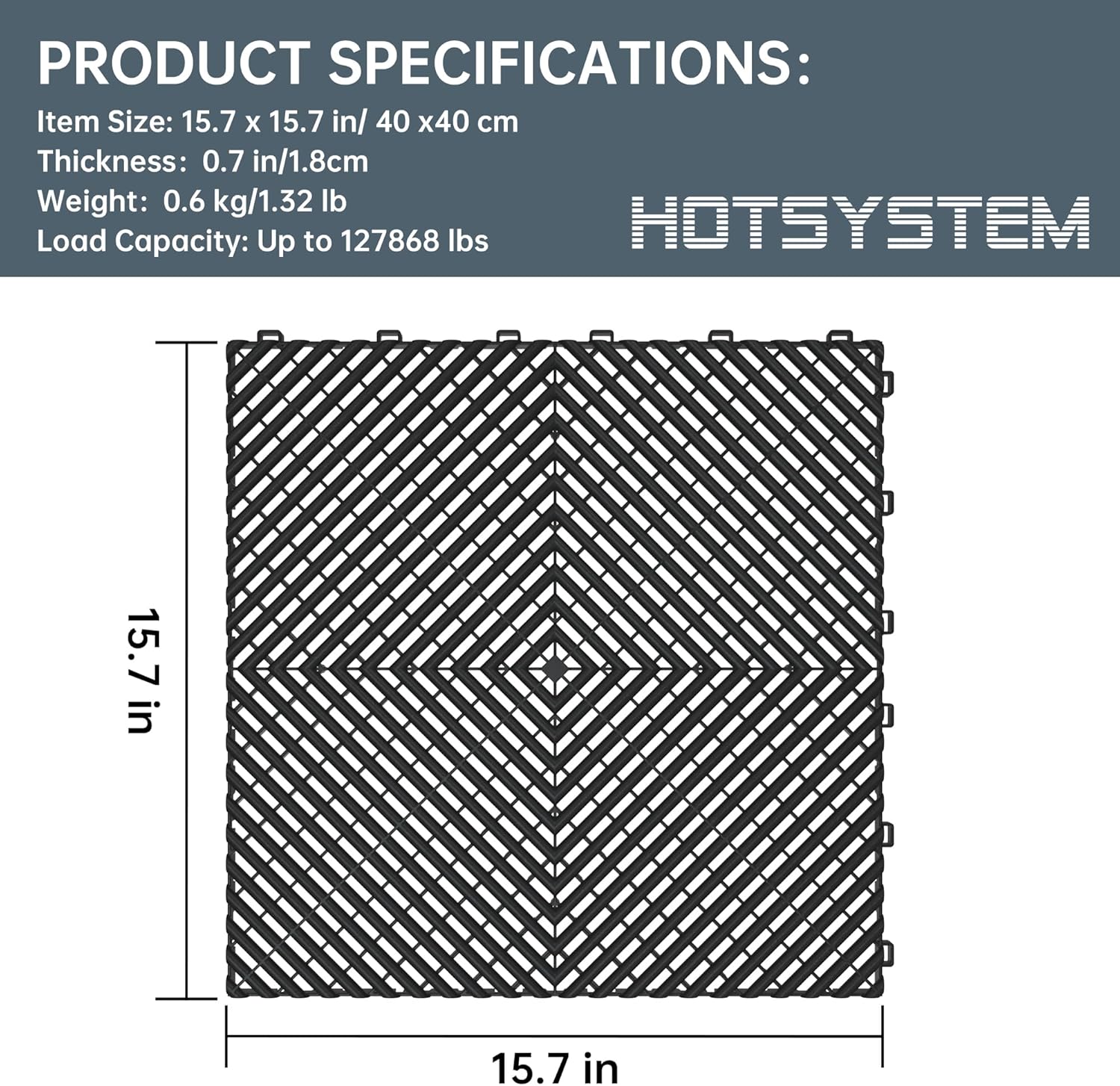 - 【Durable】Our garage tiles provide unmatched protection for your garage. They are made of thicker polypropylene. These durable tiles are designed to last and extend the life of your garage floor. Whether you're parking, operating machinery, or playing with toys, our garage floor tiles will keep your garage floor looking great for years to come. Choose HOTSYSTEM for reliable, long-lasting garage floor protection.