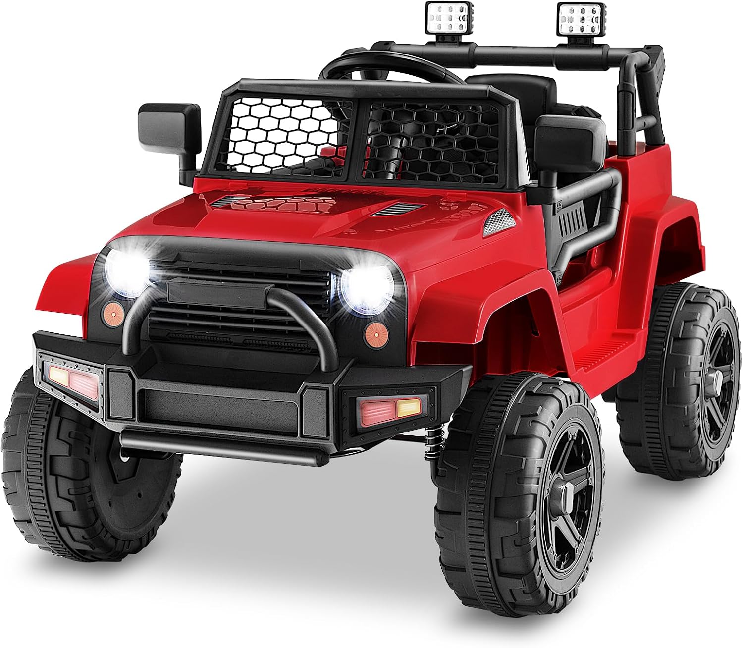 Costzon Ride on Car, 12V Battery Powered Truck Vehicle with Remote Control, Spring Suspension, Headlights, Music, Horn, MP3, USB & Aux Port, Gift for Boys Girls, Electric Car for Kids (Red)