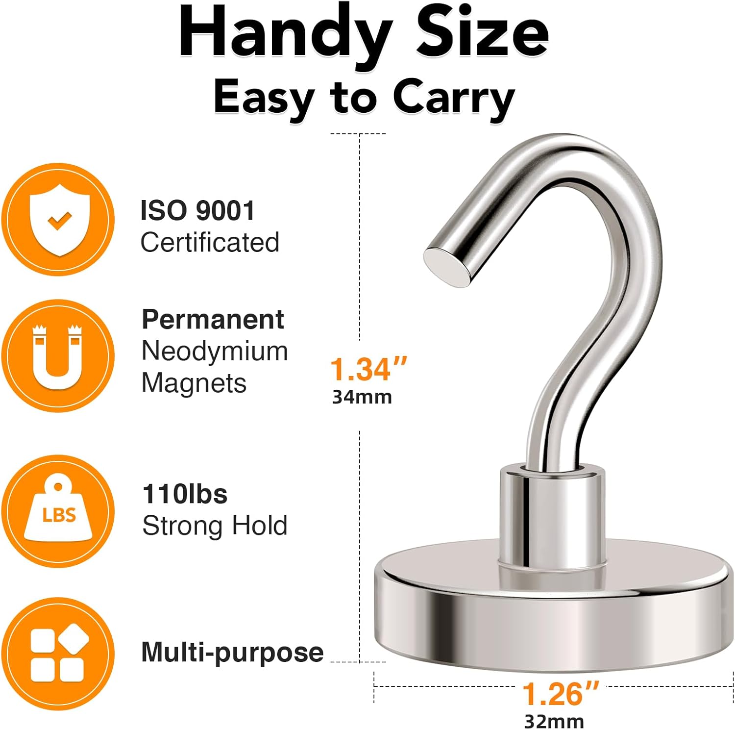 - POWERFUL MAGNETIC HOOKS:Heavy duty magnetic hooks embedded with a high grade Nd-Fe-B, these magnetic hooks offer strong pulling force under steel. As a leading seller of magnetic hooks, you can find any type of magnet hooks you need in our store