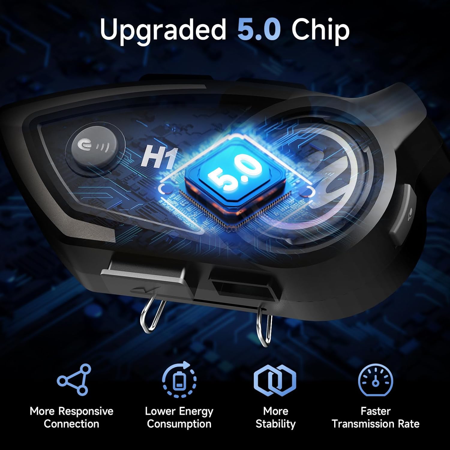 - 【One-lick Operation, Hassle-free Riding】The motorcycle headset is designed for simplicity and convenience. In addition to the automatic reconnection function, H1 also makes riding operations easy with its intuitive and minimalistic one-click operation, including one-click pairing, voice assistant wake-up, answering calls, etc. Allowing you to stay focused on the road while effortlessly managing your audio.