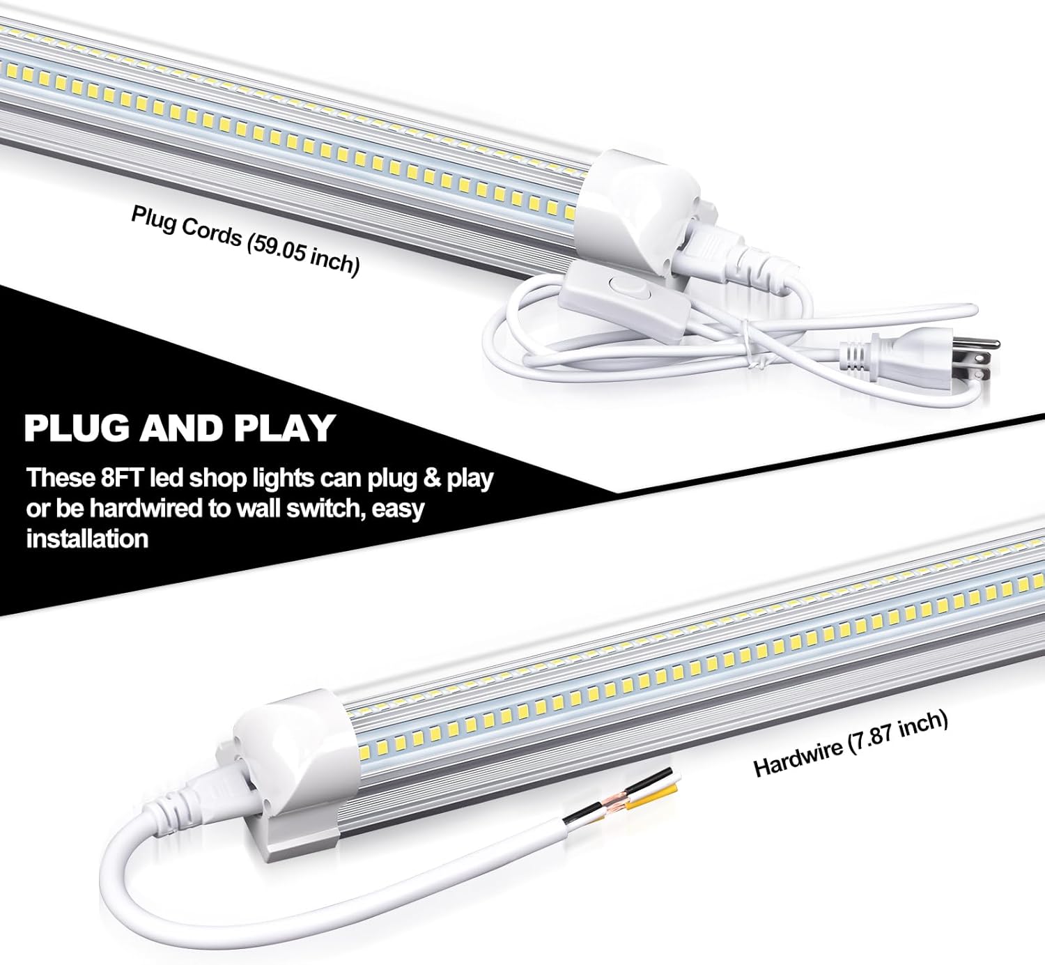 - 【Comfortable & Safe】Designed with a 270-degree lighting angle and 6000K daylight to provide an optimal lighting experience for stores, garages, workshops, warehouses and general area lighting. No buzzing ballasts, no flickering, and no mercury or hazardous materials for a comfortable, safe experience