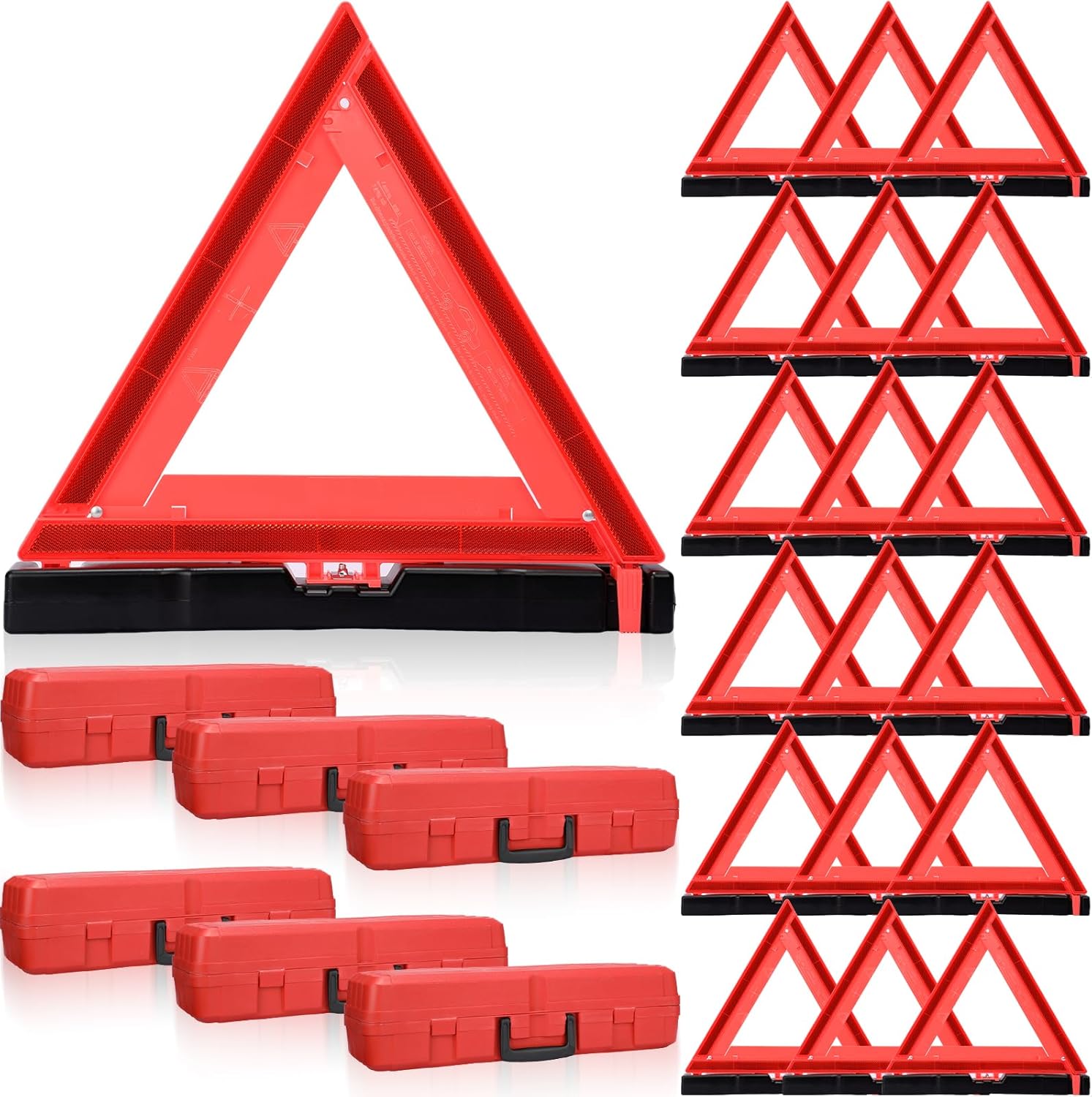 - Sufficient Quantity: you will receive 18 warning triangles in 6 different boxes, each box contains 3; Emergency triangles can increase visibility at night and remind passing vehicles to pay attention to the road conditions ahead, playing a good warning role