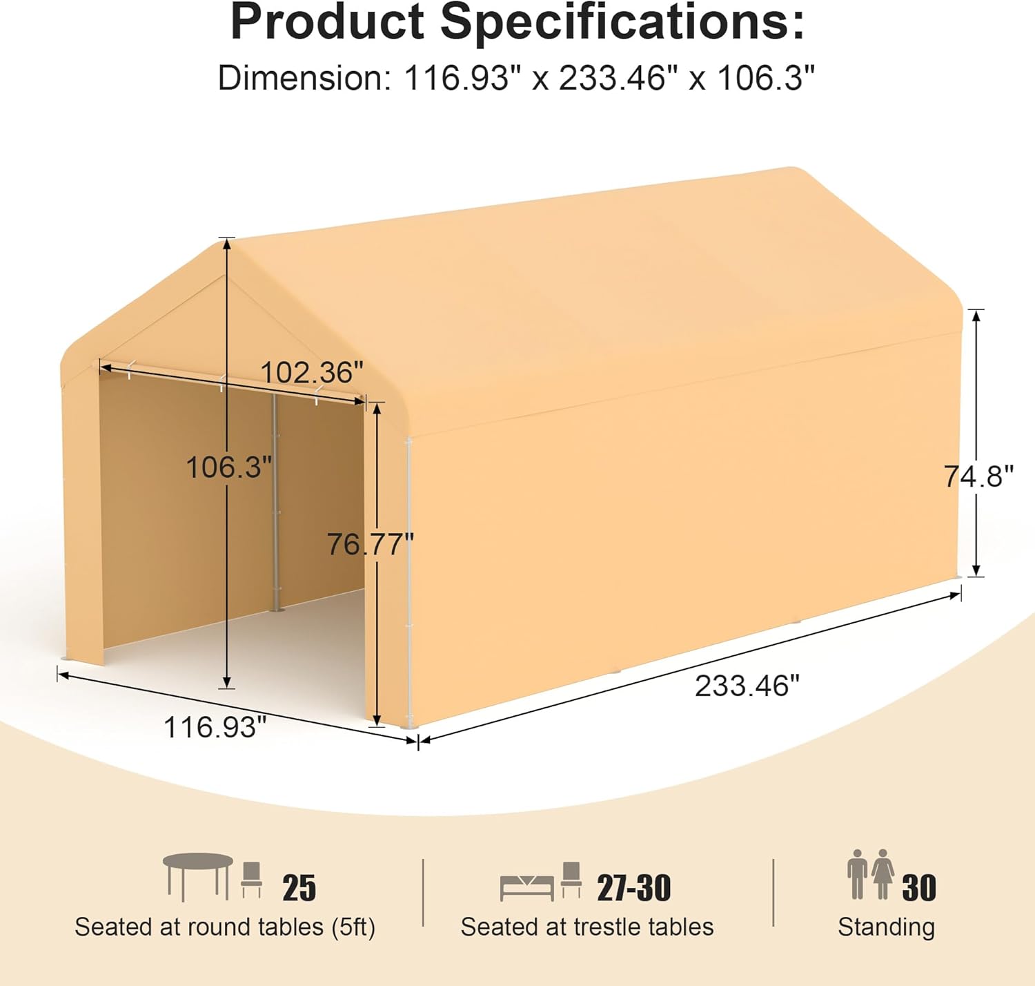 - 【Multipurpose Carport】10'x20' shelter to create a space at outside, can be used as party tent; car port; wedding tent; portable garage; storage shelter and commercial event tent.