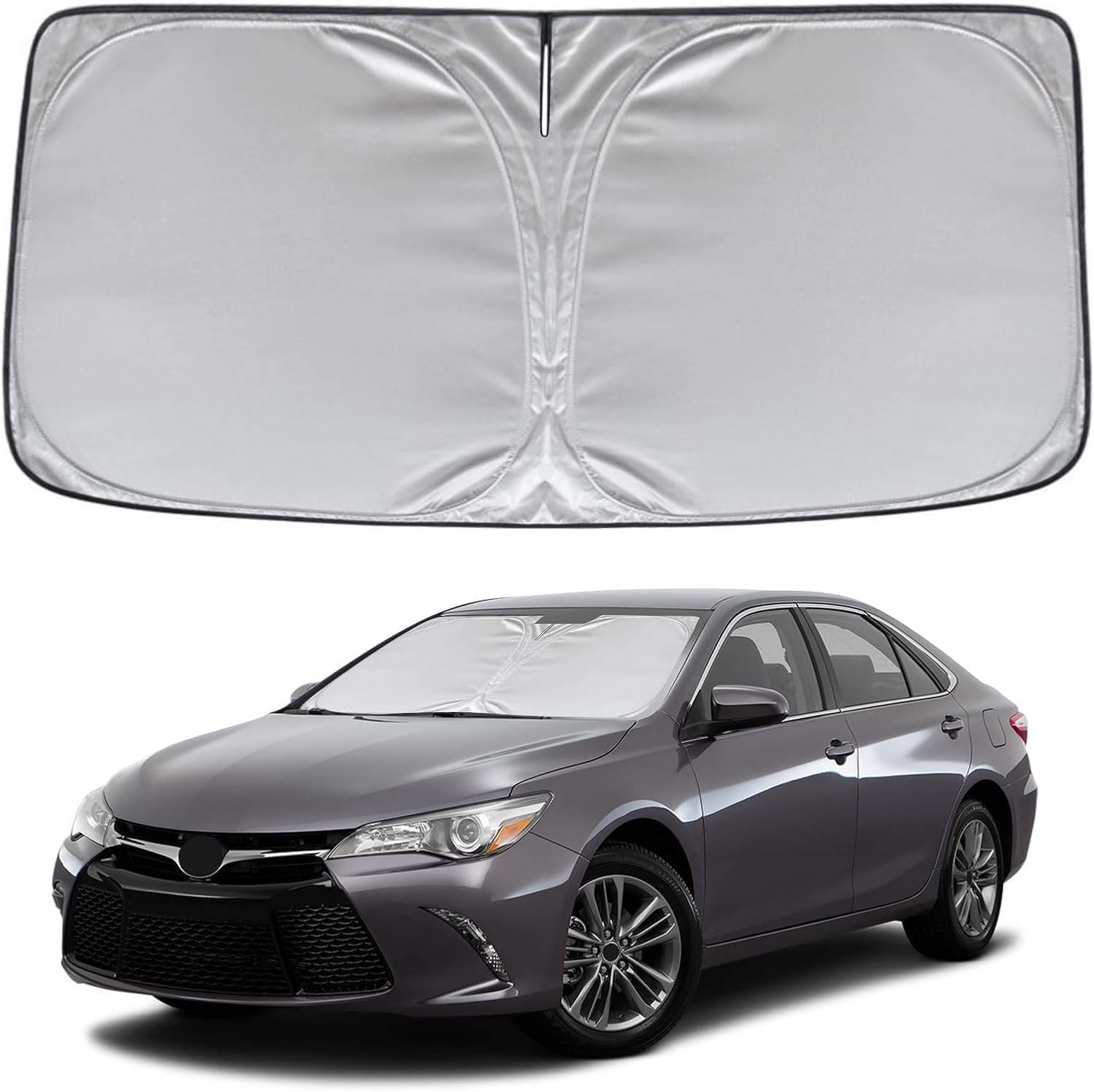 - KAYZT Camry windshield sun shade is precise custom fit for Toyota Camry 2012 2013 2014 2015 2016 2017, Thoroughly covers every corner of the windshield, Tailored to accommodate rear view mirror, Ensuring a seamless and snug fit without obstruction, Must have car accessories for Camry