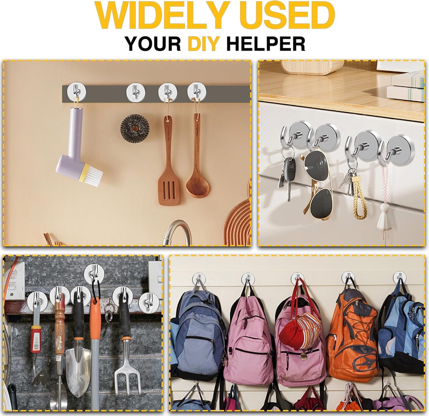 - 【Excellent Three layer Coating】Magnet hooks heavy duty are plated with 3 layers of protective coatings - Nickel + Copper + Nickel (Ni-Cu-Ni), which can greatly resist rust and corrosion, making magnetic hooks ideal for long term use