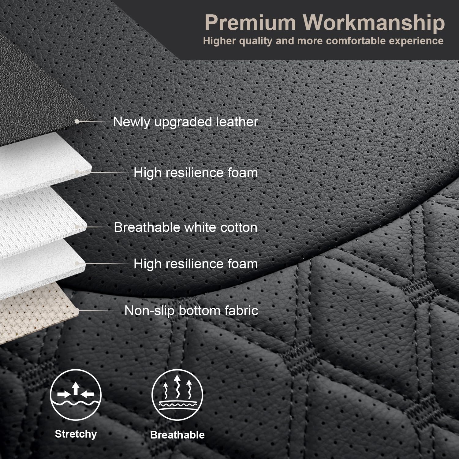 - ăQUILTED DESIGNă - Front seat cover show rich in stereoscopic vision with a diamond-shaped quilted design and stitching decoration, simple and stylish, and it can be perfectly integrated with your car interior.