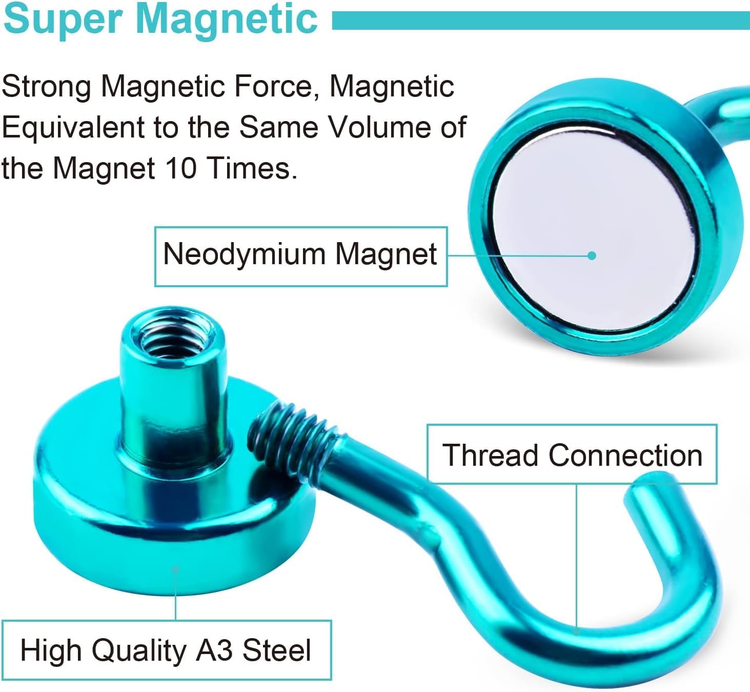 - 【Industrial Grade】Strong magnetic hooks are made of high grade and exquisite quality rare earth neodymium magnet and steel. Compact and lightweight with strong force, which can be strongly attracted by iron, nickel and other ferromagnetic material