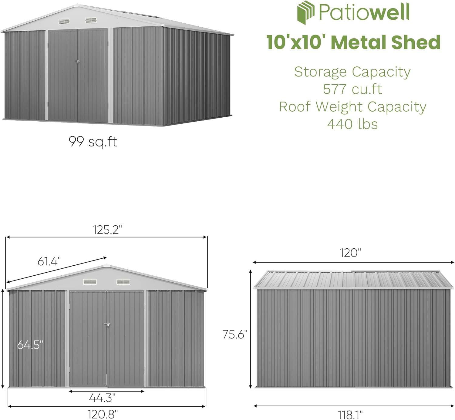 - 【Ample Storage Space】Measuring 10 feet by 10 feet, this shed offers a generous storage area that can comfortably accommodate a wide range of items. Whether you’re storing large power tools, seasonal equipment, or gardening supplies, there is ample room to organize everything neatly. This makes it easier to find what you need and keeps your outdoor space uncluttered.