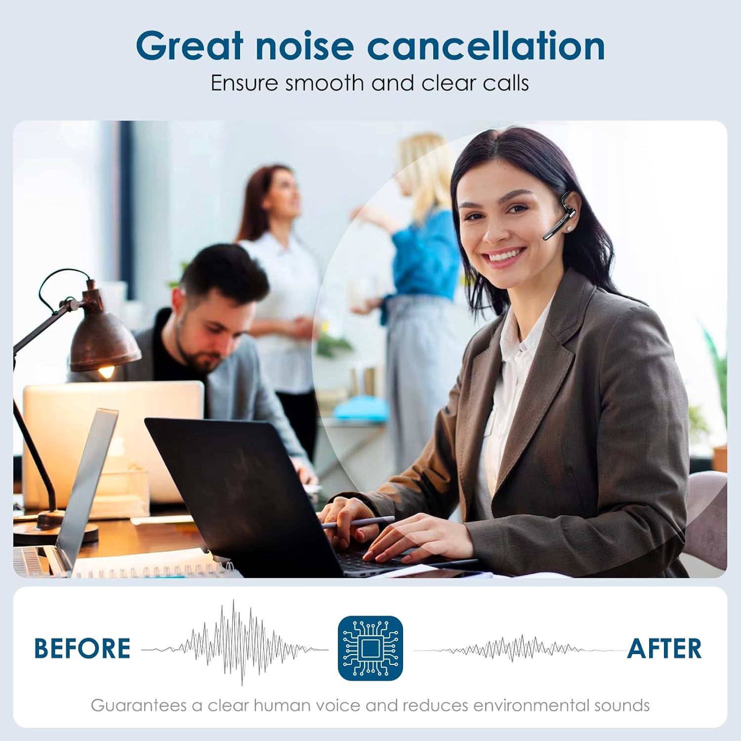 Bluetooth Headset, Wireless Bluetooth Earpiece V5.0 Hands-Free Earphones with Built-in Mic for Driving/Business/Office, Compatible with iPhone and Android (Black)