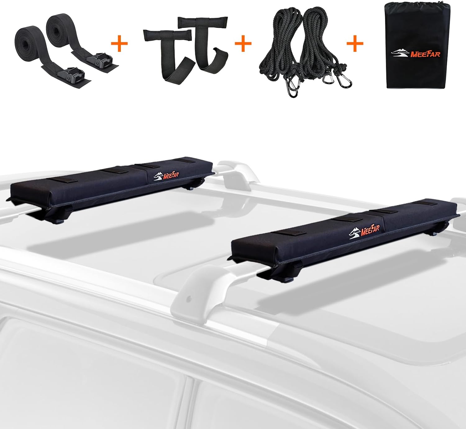 MeeFar Universal Roof Rack Pads Fit on Cross Bars - for Kayak/Surfboard/SUP/Canoe with 2 Heavy Duty Tie Down Straps, 2 Tie Down Rope, 2 Quick Loop Strap and Storage Bag