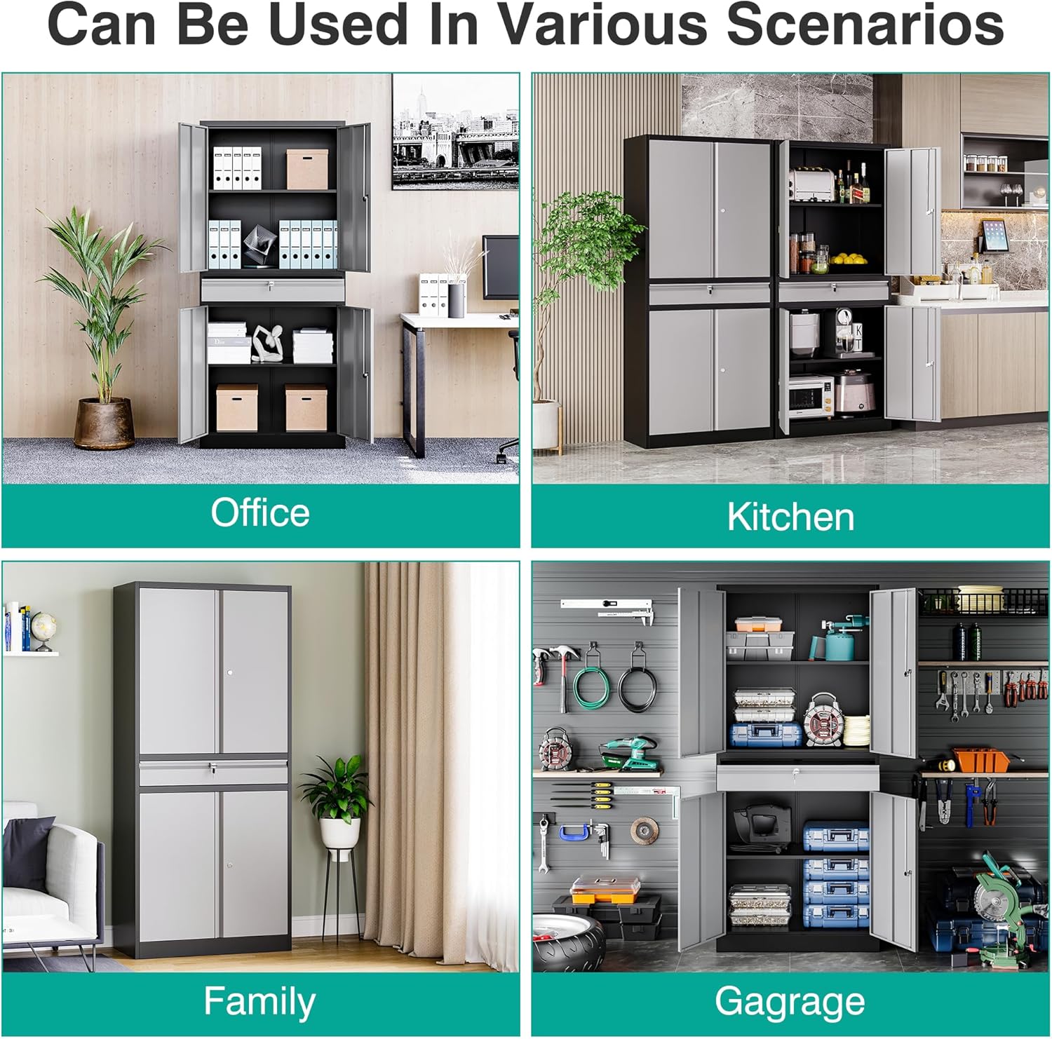 - Multifunctional Cabinet: The storage cabinet with doors and shelves have a lockable door with 2 keys and adopt a 3-point locking system, which allows you to store your valuables safely. This metal storage cabinet with doors and shelves can be used in the home, office, garage, warehouse, workshop, school, or anywhere you need additional storage.