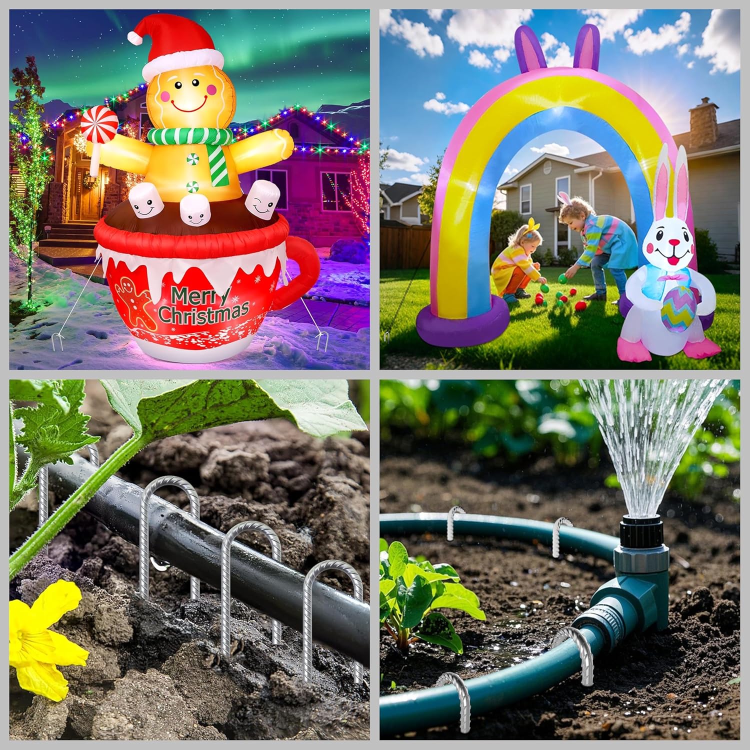 - Chisel Point End--45 degree end makes j hook stakes diving into ground quickly and easily to hold down the swing sets, bounce house, wire fence, lawn sprinkler, Christmas inflatable decorations, animals statues, birdbath