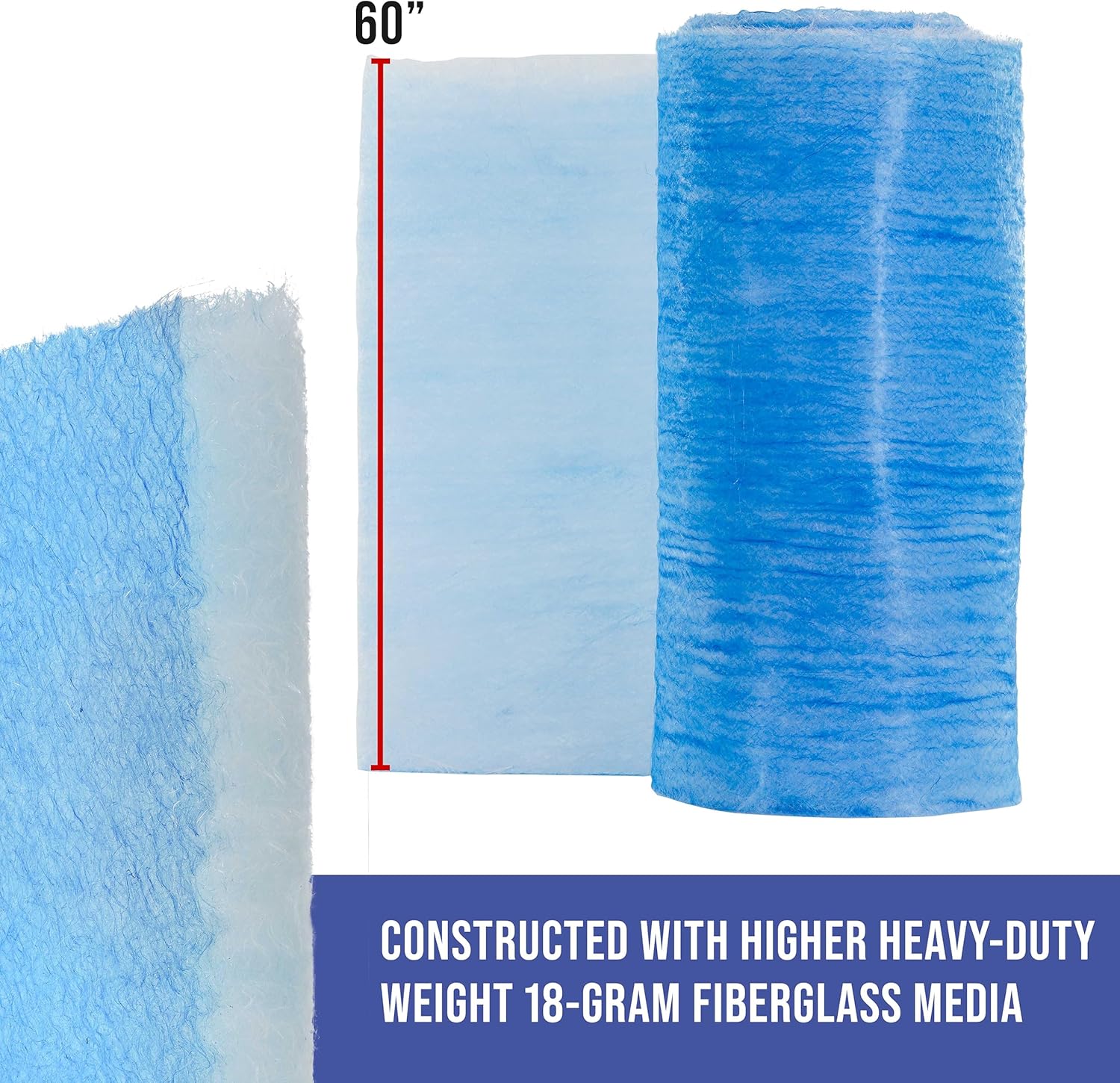 - Highly effective blue exhaust paint arrestor filter roll constructed with higher heavy-duty weight 18-gram fiberglass media provides superior paint trapping and filtering performance.
