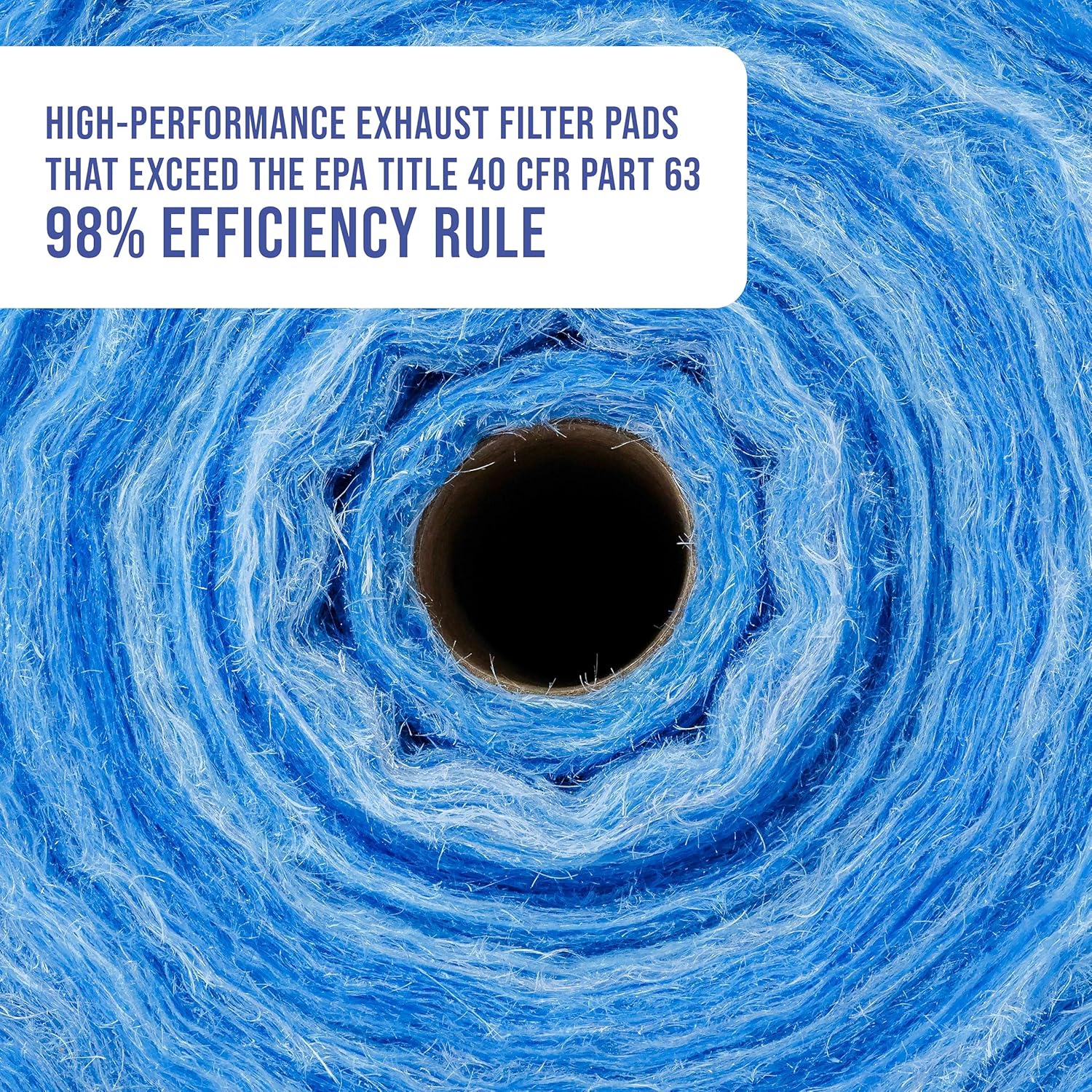 - Highly effective blue exhaust paint arrestor filter roll constructed with higher heavy-duty weight 18-gram fiberglass media provides superior paint trapping and filtering performance.