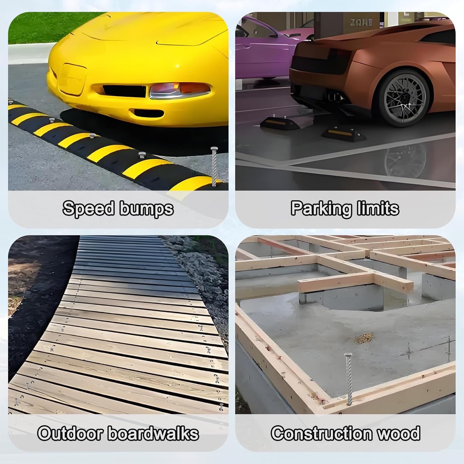- Wide Range of Uses - Asphalt anchors are suitable mounting hardware for permanent installation in ground. Versatile use to anchoring speed bumps, parking curbs, wheel stops, cord covers, handicap threshold ramp, tarp