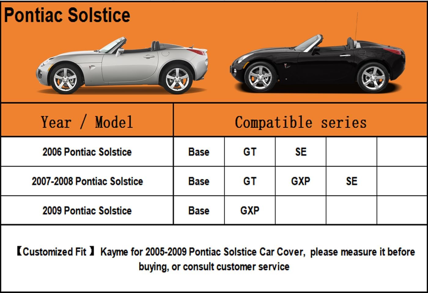 - ăSuitable forăâ Custom fit for Pontiac Solstice (2005-2009). Come with a large enough portable bag to store your cover when you do not use