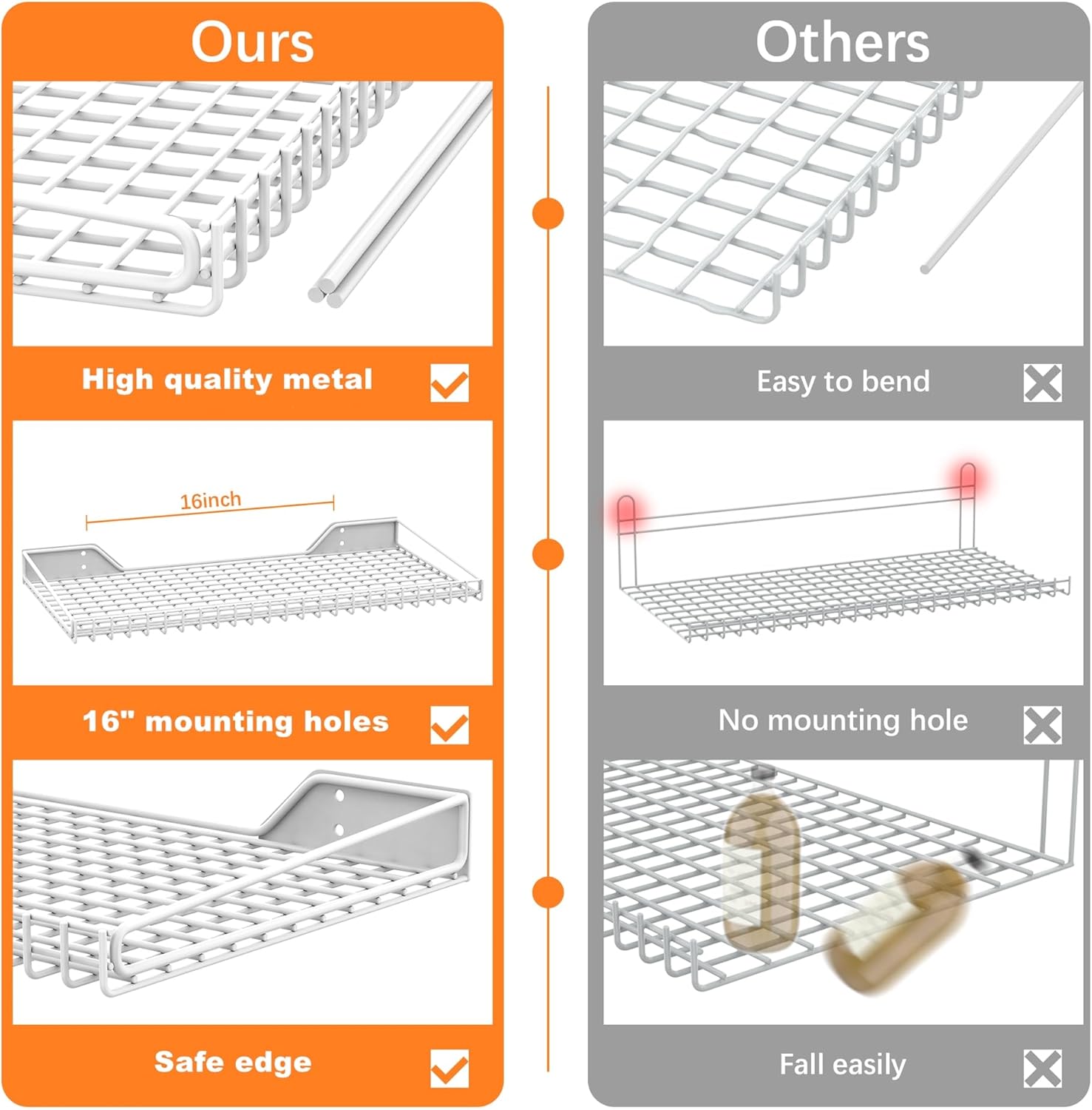 - Well Constructed: Garage wall mount shelving is made of high quality steel with powder coated finish and well constructed. Holds up to 65lbs/shelf.