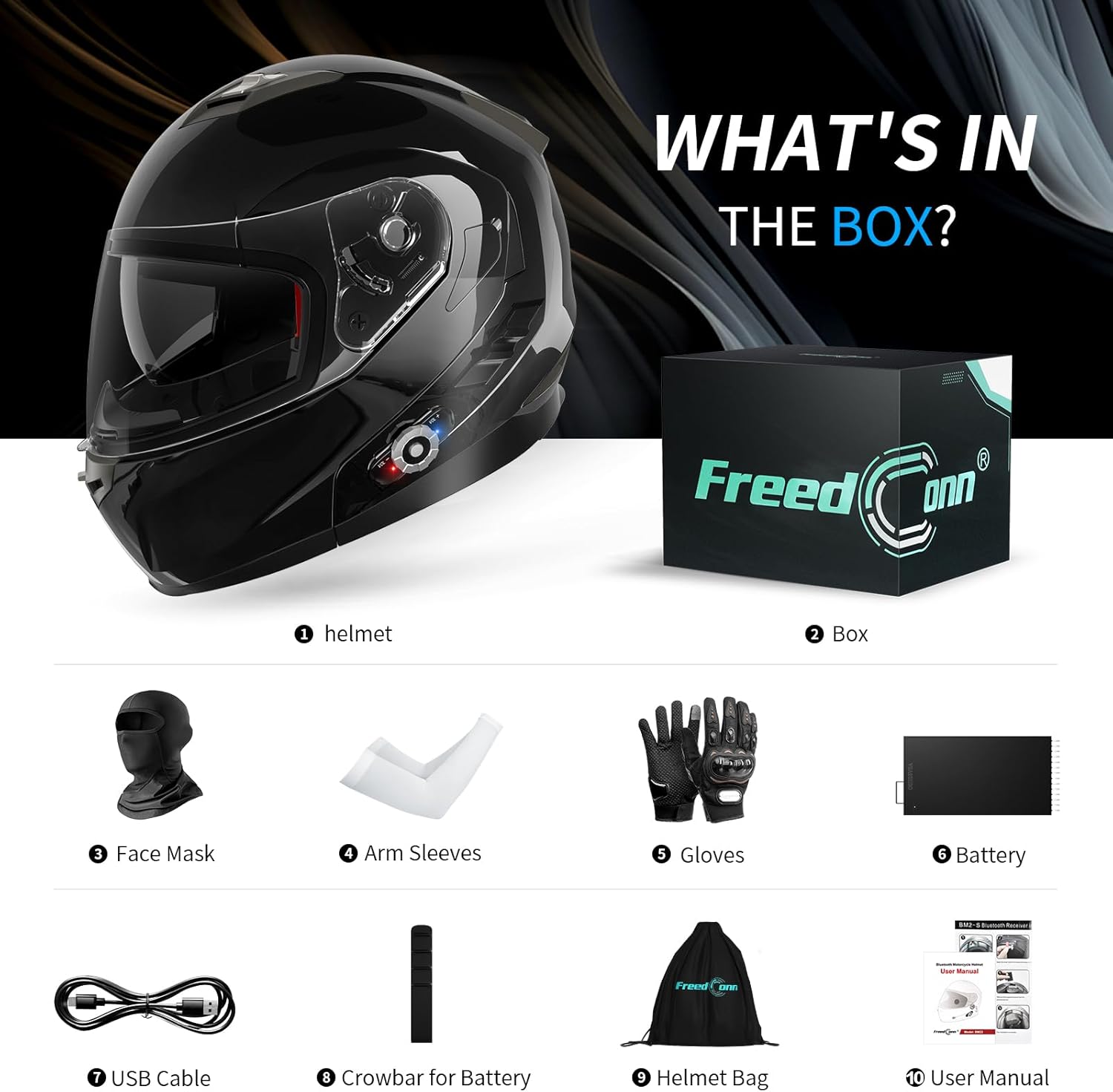 - DOT Safety Motorcycle Helmet Bluetooth: Made of stronger ABS shell, designed with dual visor, breathable liners and multiple air vents system, FreedConn motorcycle Bluetooth helmet meets DOT and FMVSS-218 safety standards, ensures safety and comfortability for all-day wearing.