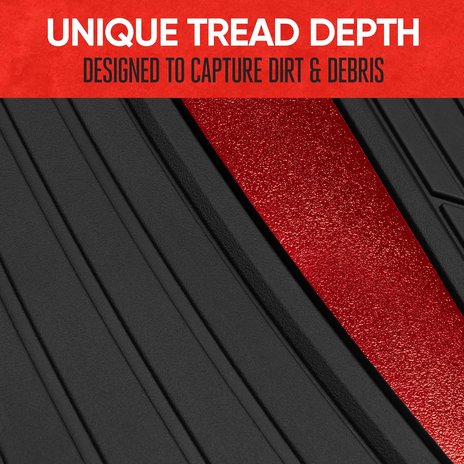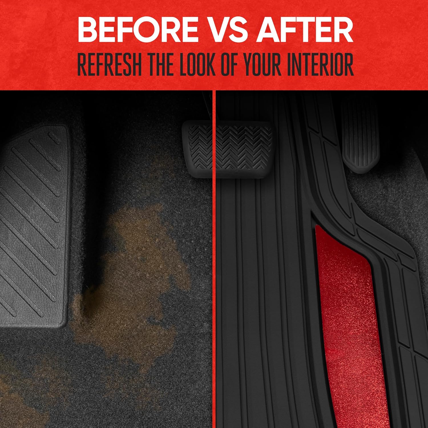 Motor Trend ChromeTech Car Floor Mats Full Set - Durable Rubber Floor Mats for Cars with Two Tone Accent, All Weather Interior Protection for Front and Rear with Non-Slip Backing, Red Chrome