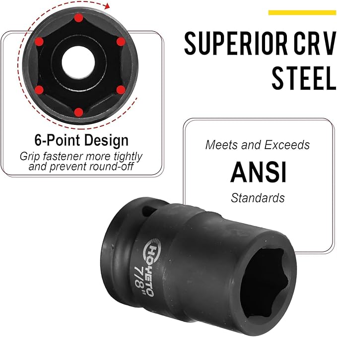 - HOYETO 29-Piece 3/4" Drive Impact Socket Set, SAE 3/4" to 2-1/2", 6-Point Design, Rugged Construction, with Heavy-Duty Storage Case – Ideal for Auto Repair & Household Use