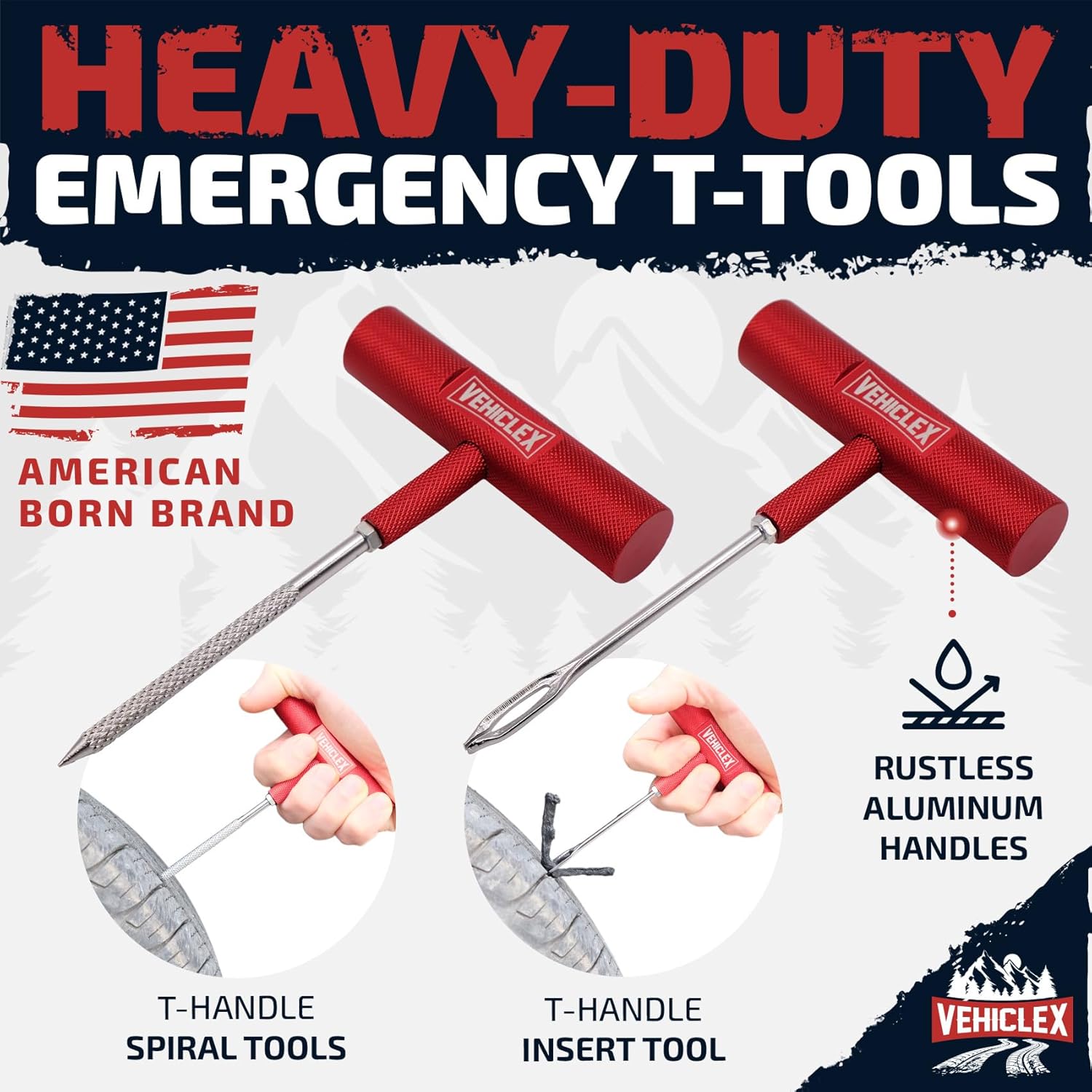 Vehiclex Tire Repair Kit for Plug and Patch with Aluminum Handled Tools - Emergency Kit in Zippered Bag for Car, Motorcycle, ATV, Tractor, Lawn Mower