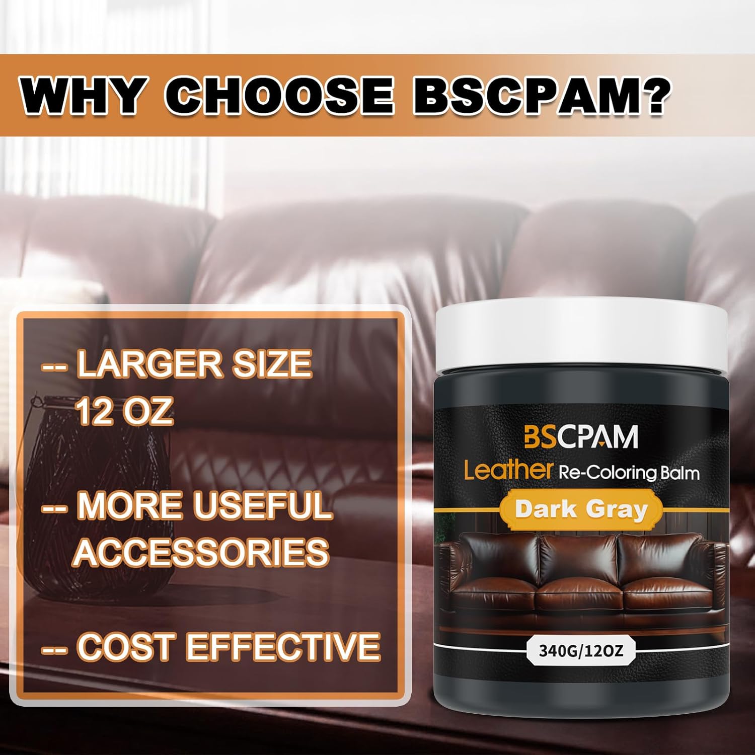 - Leather Recoloring Balm & Mink Oil 2 in 1 kit: BSCPAM Large Volume's Leather recoloring balm can restore fading color leather furniture surface to its former glory. Bring all the leather back to its original colour. and Polished leather with Mink oil, It makes the leather more shiny and lubricated, and also protects the surface of the leather, making the surface waterproof, anti-division and more durable.