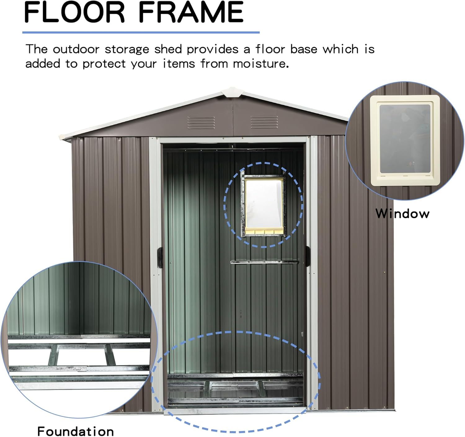 - [DIY Your Outside Shed Storage]: Metal Floor Base. You can create your own style of flooring for this storage shed to suit your needs and scene. At the same time, you can also use some storage racks to rationally use the wall space of the outdoor storage cabinet waterproof. This will bring you a different experience and will give full play to its amazing storage capacity.