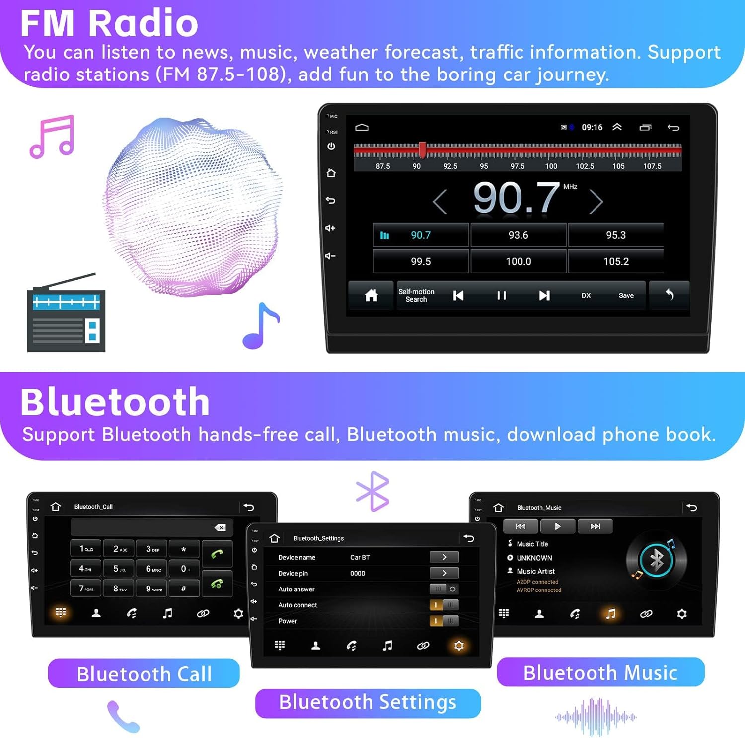 - 【Bluetooth & FM Radio】Bluetooth support incoming and outgoing calls/synchronize address book/support mobile phone music playback. You can transmit music to the car stereo through FM, enjoy the original car stereo, support radio stations (FM 87.5-108), add fun to the boring car journey.