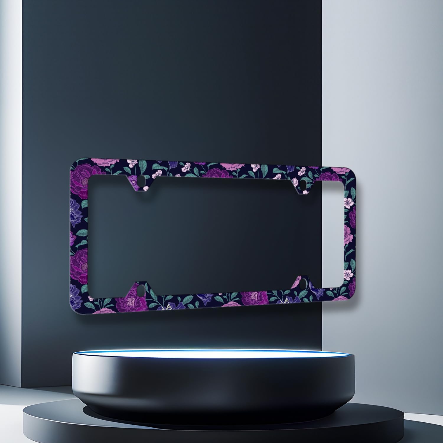 Purple Floral Flowers License Plate Frame Roses Peonies Colorful License Plate Stainless Steel Flowers Car Accessory Funny License Plate Decoration Women Size 12.2" x 6.2" with Screws