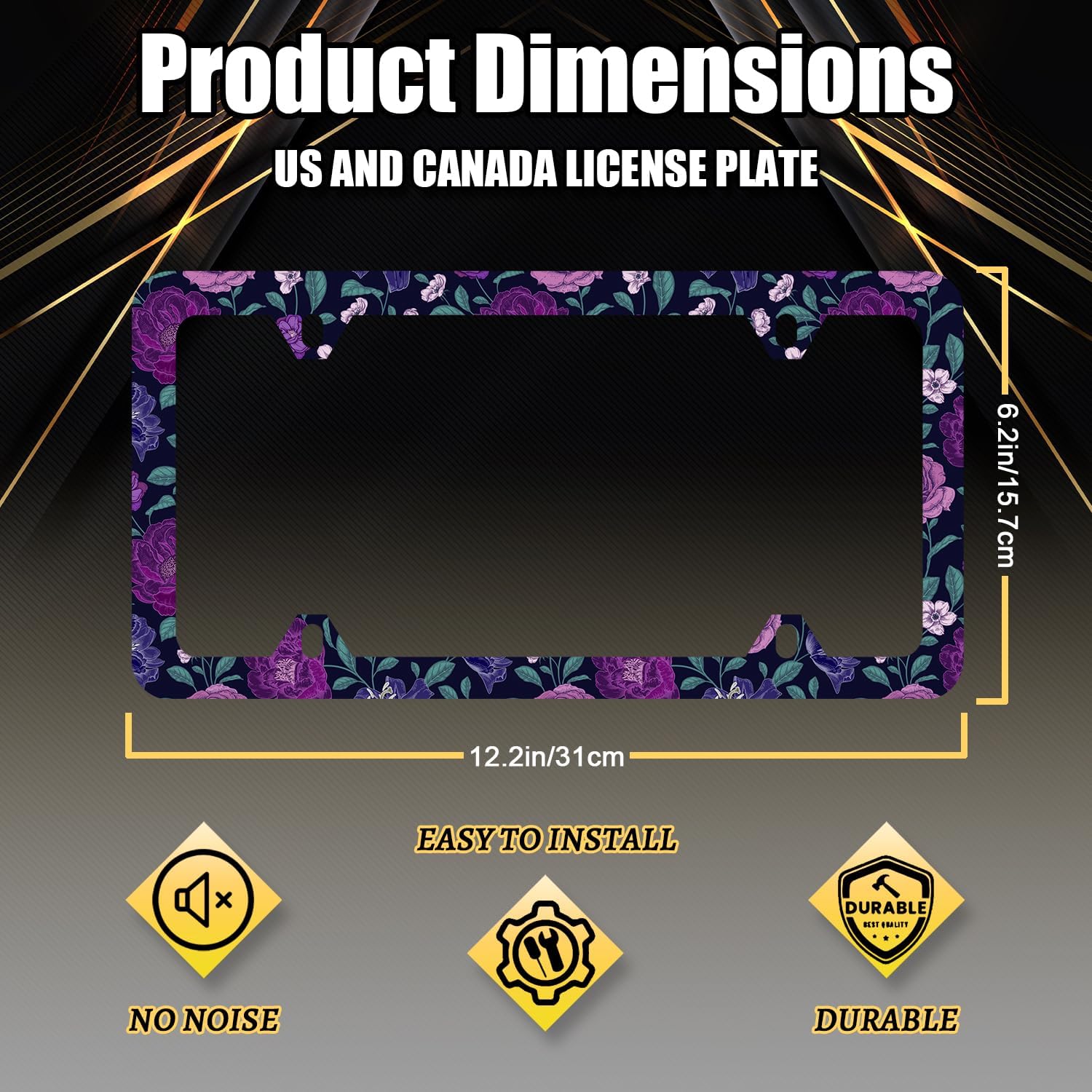 - The size of the license plate frame is: 12.3" x 6.3" , it fits all standard size US and Canada vehicle license plates.the stylish design frame fits ly on your car license plate.