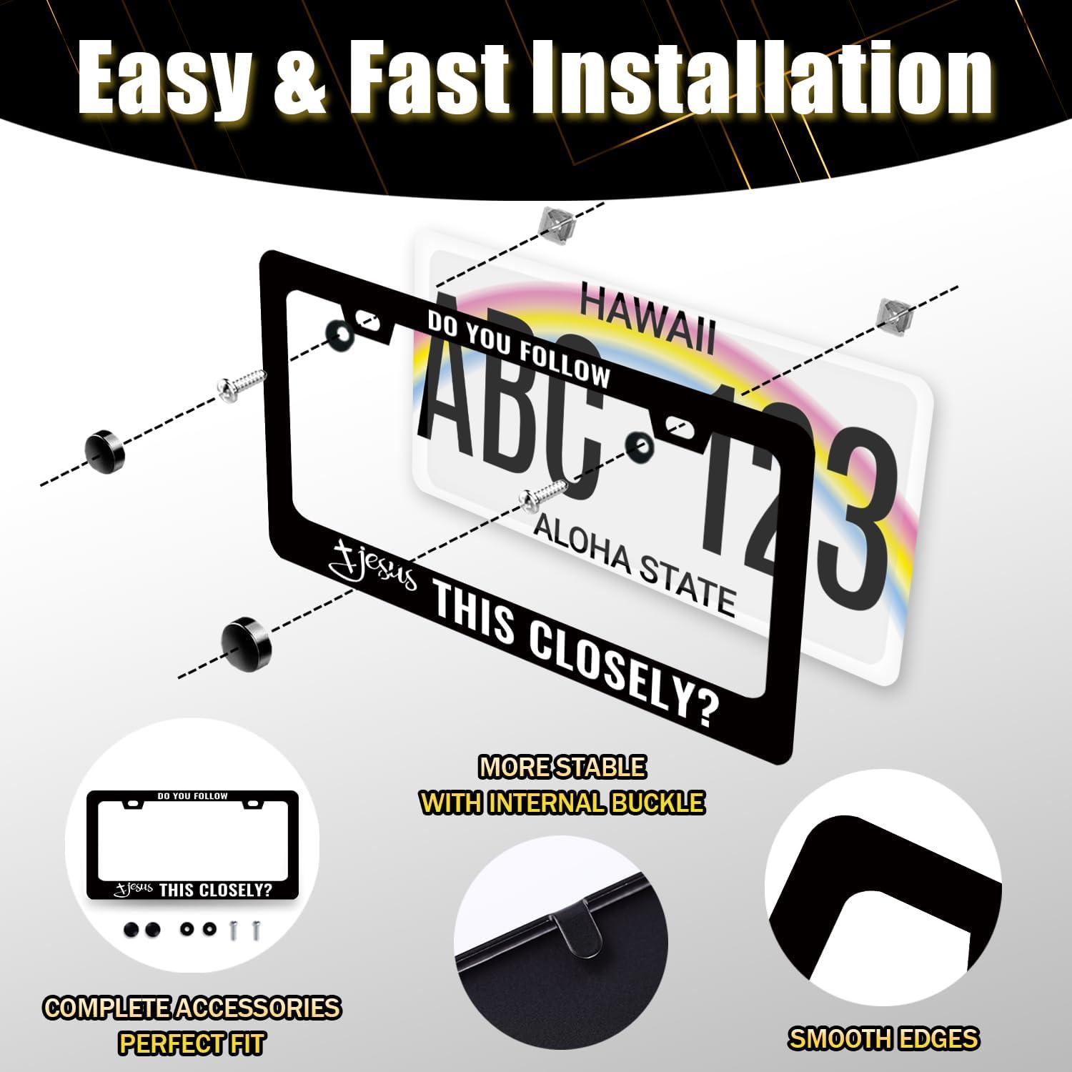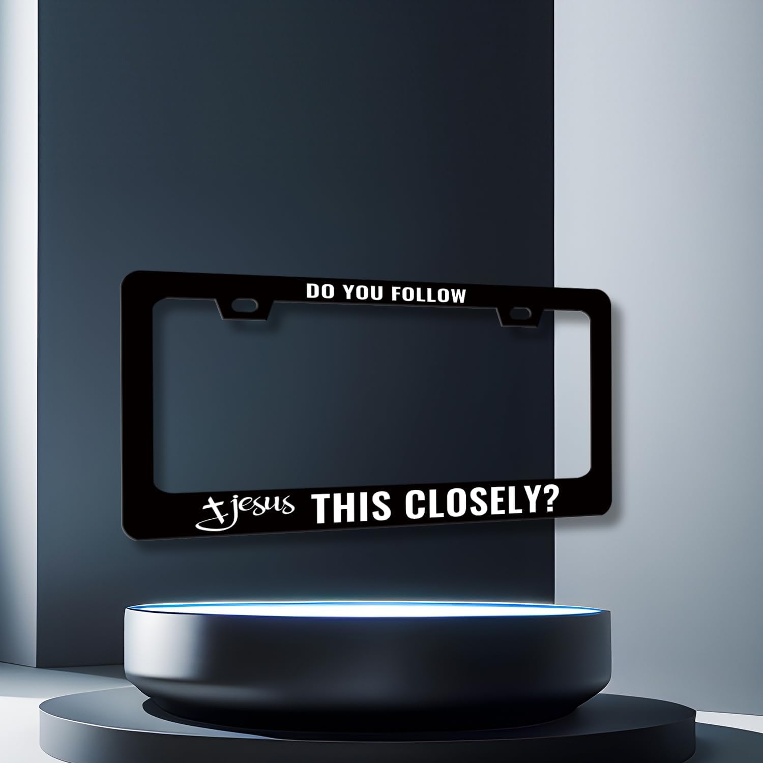 Jesus License Plate Frame Do You Follow Jesus This Closely License Plate Stainless Steel Christian Car Accessory Funny License Plate Decoration Men Women Size 12.2" x 6.2" with Screws