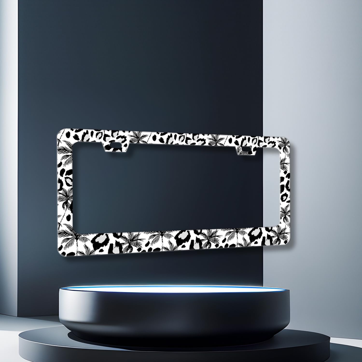Leopard License Plate Frame Abstract Tropical Palm Trees License Plate Stainless Steel Colorful Car Accessory Funny License Plate Decoration Men Women Size 12.2" x 6.2" with Screws