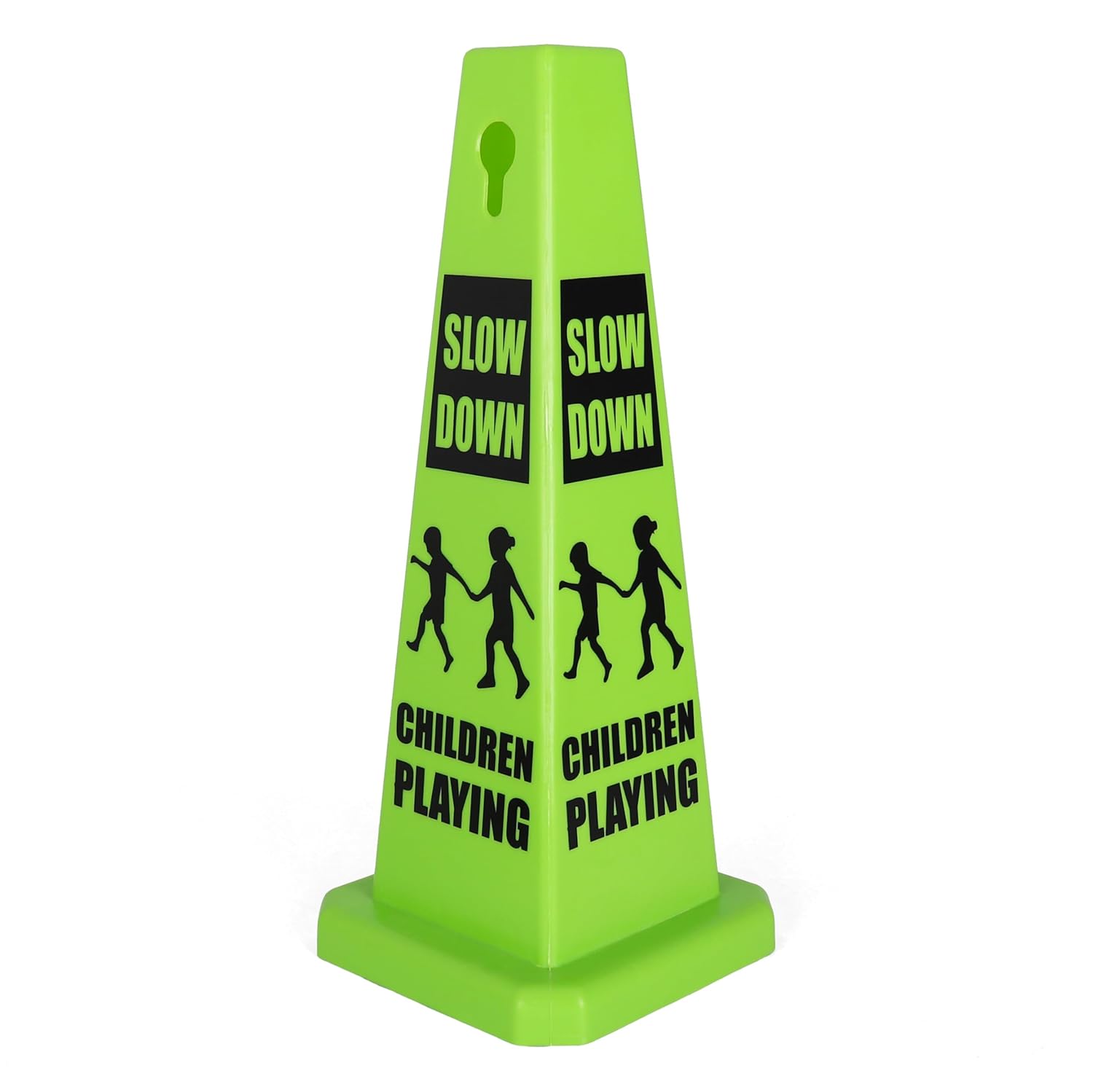 Imperial Standard Children Playing Cone - Children at Play Sign - Four-Sided Slow Down Kids Cones - Child at Play Signs - Drive Slow/Kid Alert Sign (4 Pack - Green)