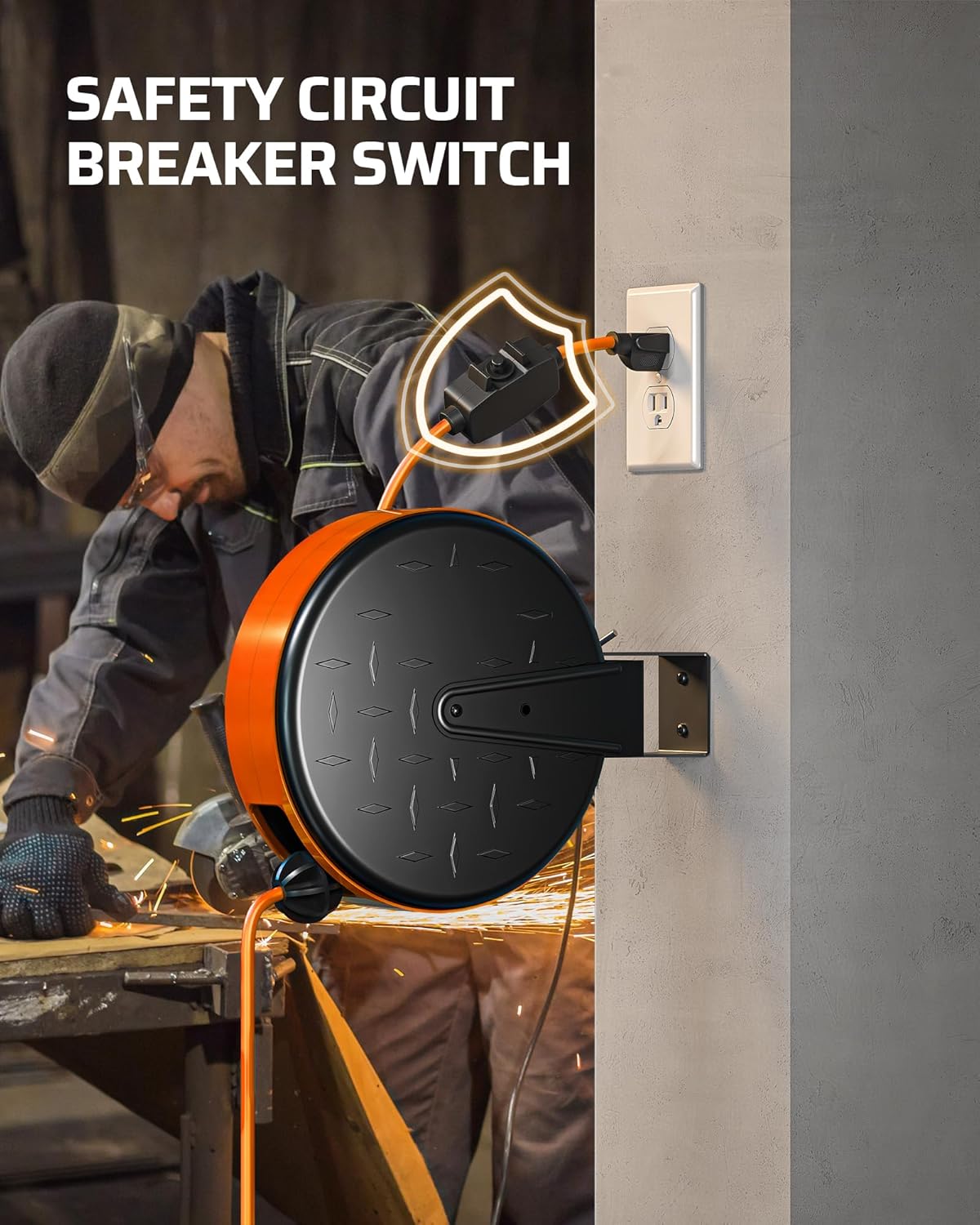 - [Safety 10A Circuit Breaker] Enhance safety with our UL certified electric cord reel, with a 10A circuit breaker, protecting devices from short circuits and overloads; If the total current exceeds 10A, it automatically cuts off power, preventing damage; simply press the reset button to resume operation