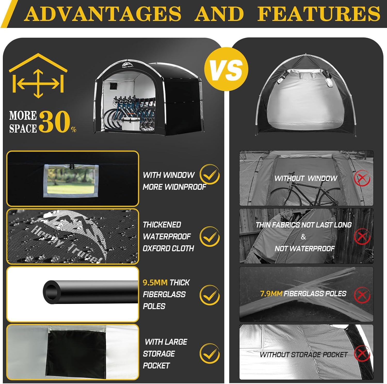 Happy Travel Bike Storage Shed Tent,Outdoor Portable Bicycle Storage Sheds with 210D Oxford Fabric PU4000 Waterproof for 2/3/4/6/8 Bikes,Bike Covers Shelter for Motorcycle,Garden Tools,Toys,Lawn Mower