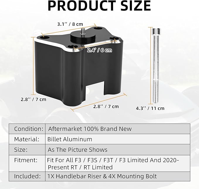 - Fitment: Handlebar risers for Can-Am Spyder RT RTs 2020-Newer and Spyder F3 F3s 2015-Newer models, allowing you to customize your riding experience. Designed to adjust 1 1/8" backward and 1 3/8" upward, they ensure a precise fit and optimal comfort.