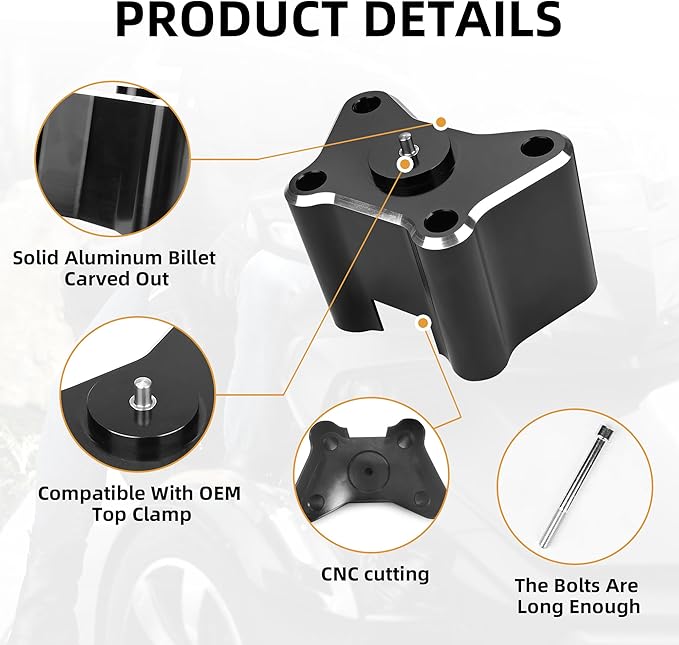 - Material: Crafted with precision using high-quality CNC machined aluminum, these handlebar risers are built to last. The sturdy and durable construction ensures long-lasting performance, even in demanding riding conditions.
